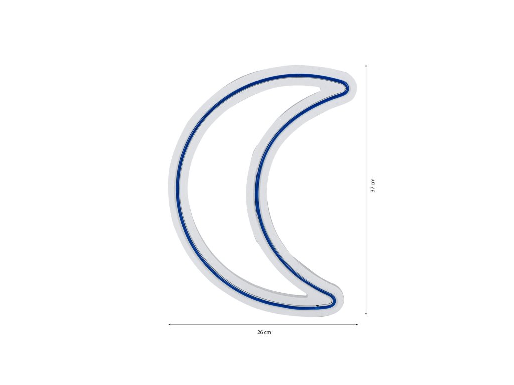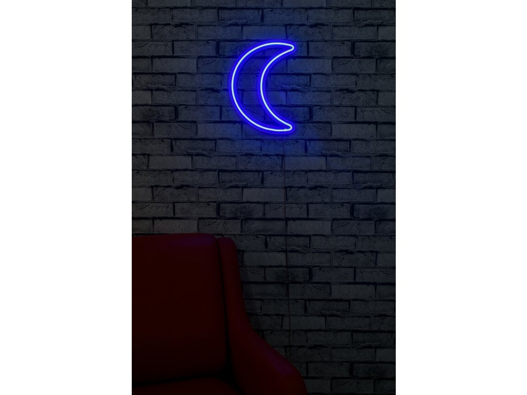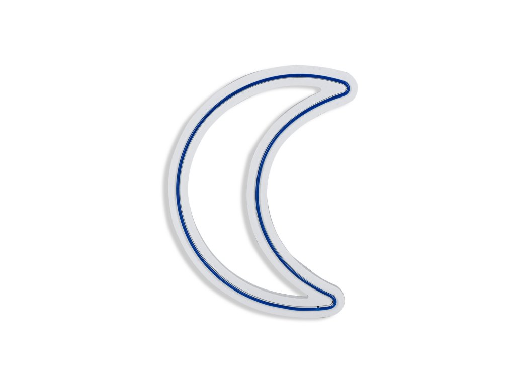 Dekorativní LED osvětlení má tvar srpu měsíce a je vyrobené z kvalitních neonových modrých proužků ukotvených na pěnové šabloně.
