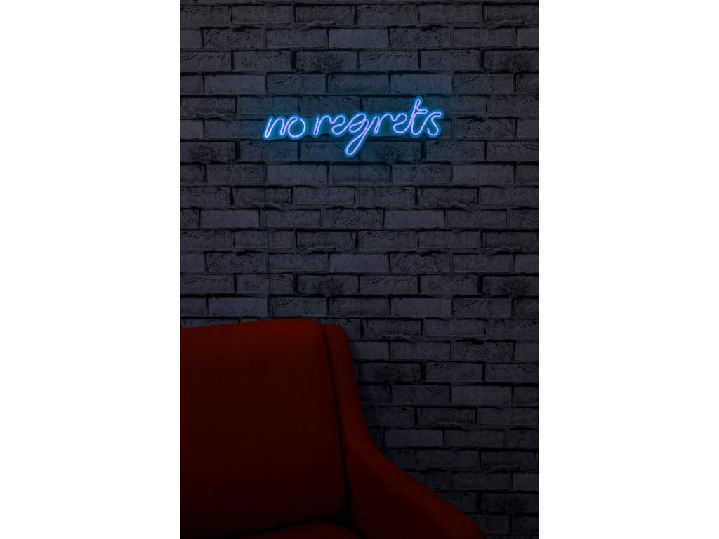 Dekorativní LED nápis na zeď NO REGRETS v modré barvě