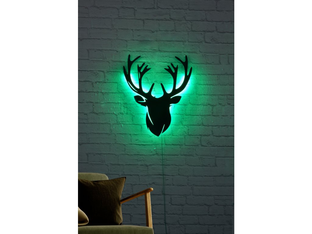 Z kvalitní MDF desky vyrobená nástěnná dekorace je vylepšena o LED zelené osvětlení a může být skvělým doplňkem například pro milovníky myslivosti.