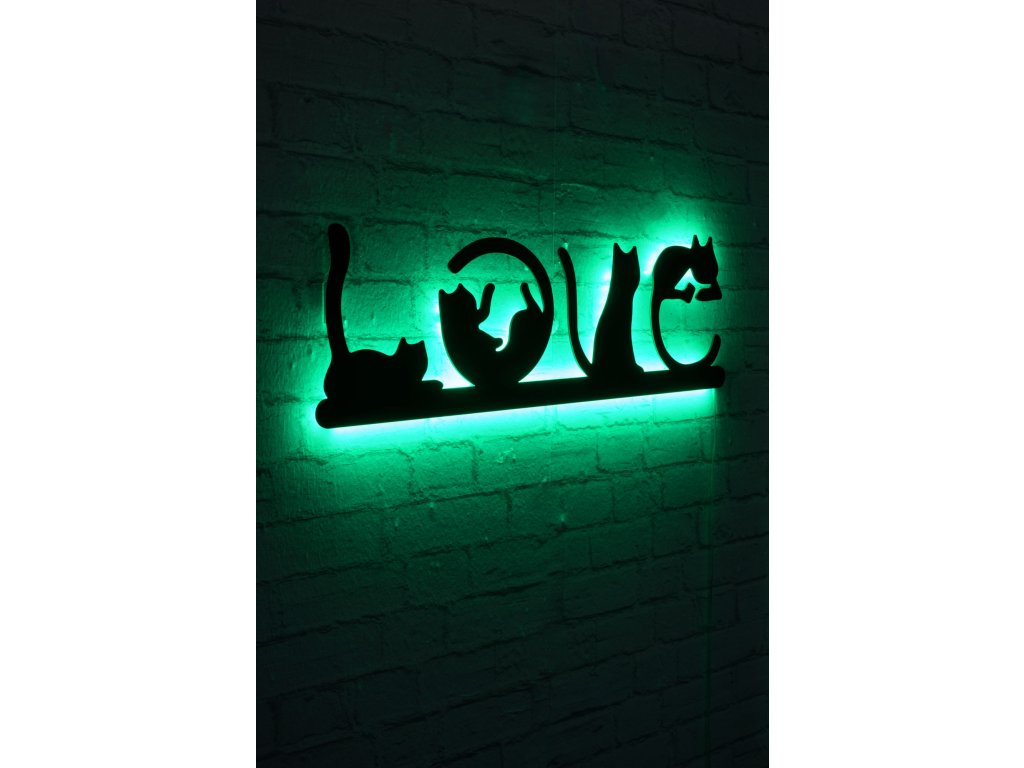 Nápis LOVE je efektivně podsvícený zeleným LED světlem a dodá každému interiéru informaci, že tady milují kočky.