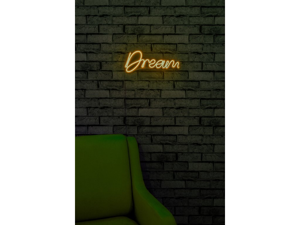 Anglický nápis DREAM je efektivně podsvícený žlutým LED světlem a dodá jakémukoliv interiéru punc, neboť nám osvětleným nápisem připomíná náš „SEN“.