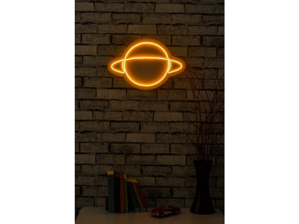 Silueta planety Saturn je efektivně tvořená žlutými LED flexibilními neonovými proužky a dodá každému interiéru nádech vesmírných dálek.