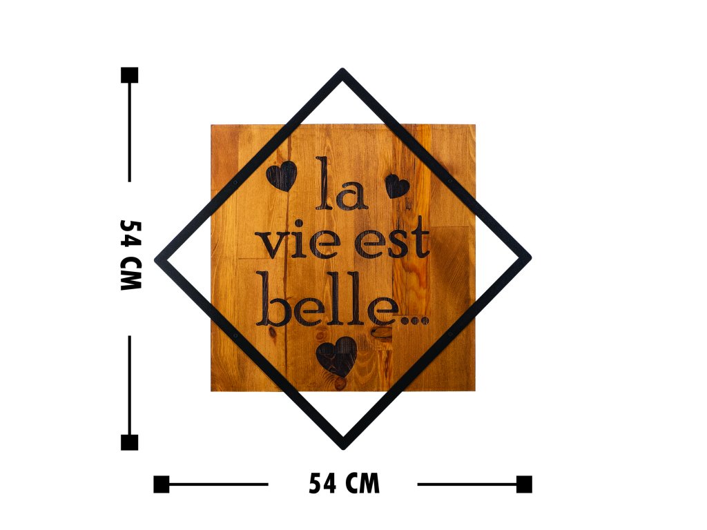 Nástěnná dekorace dřevo LA VIE EST BELLE 54 x 54 cm