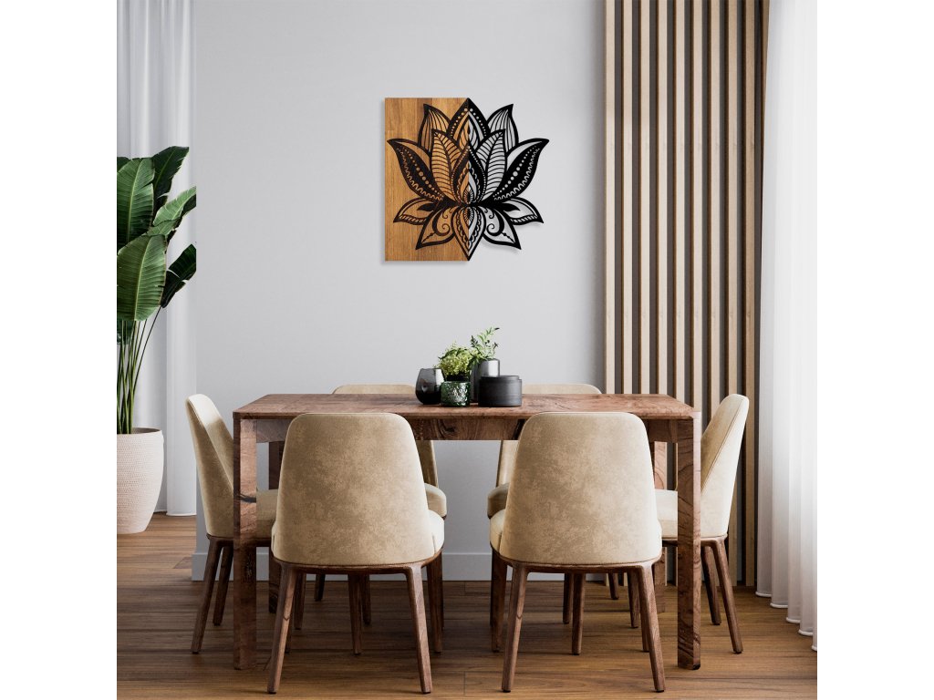 Nástěnná dekorace dřevo LOTOSOVÝ KVĚT 50 x 58 cm
