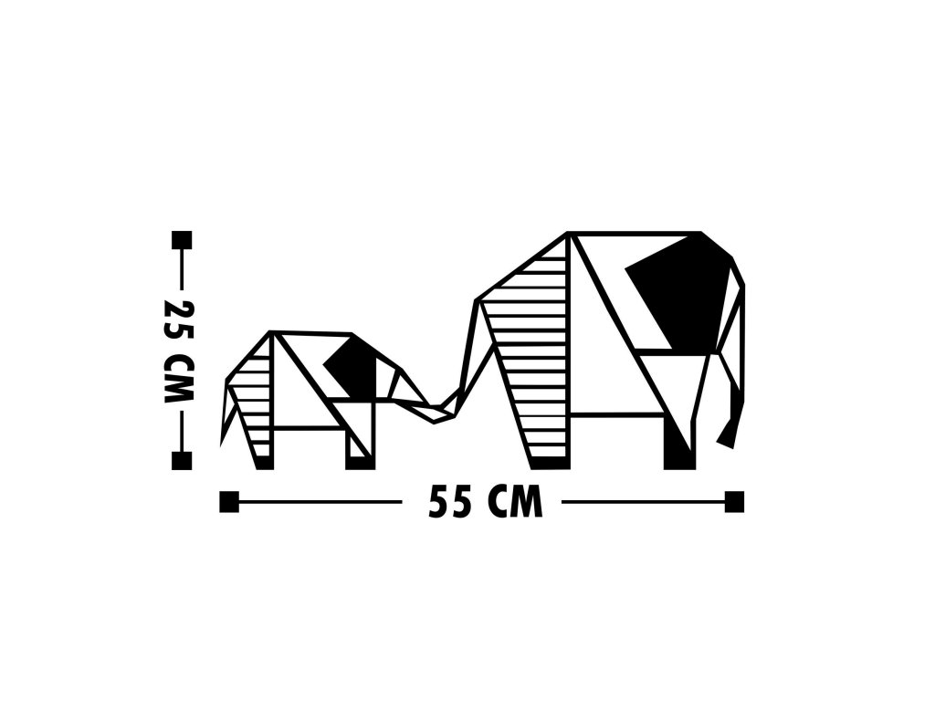Geometricky pojatý kovový motiv 2 SLONI tvoří elegantní designovou nástěnnou dekoraci vhodnou do jakékoliv místnosti.
