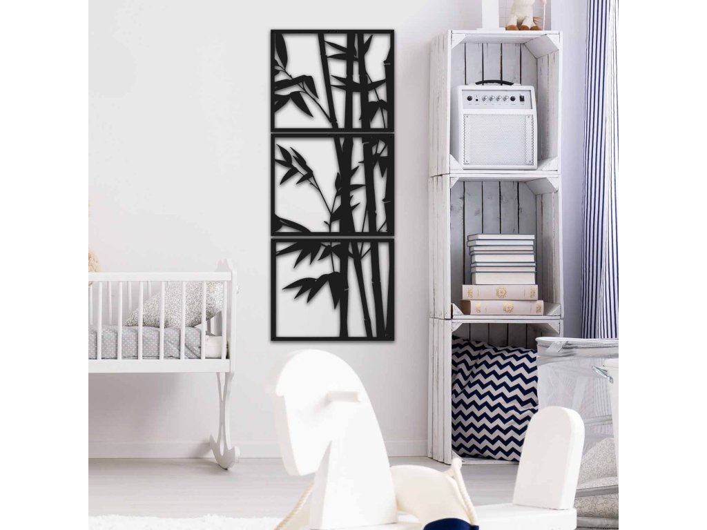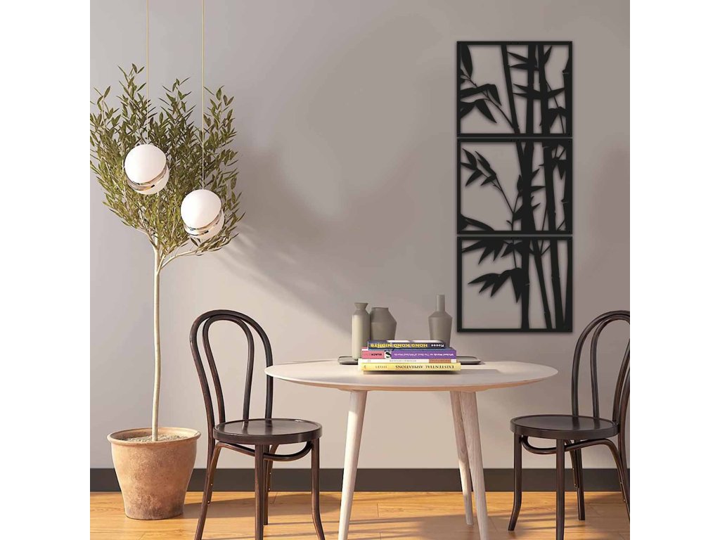 Úžasná kovová nástěnná dekorace, která se skládá ze tří rámů s integrovanými částmi bambusů.