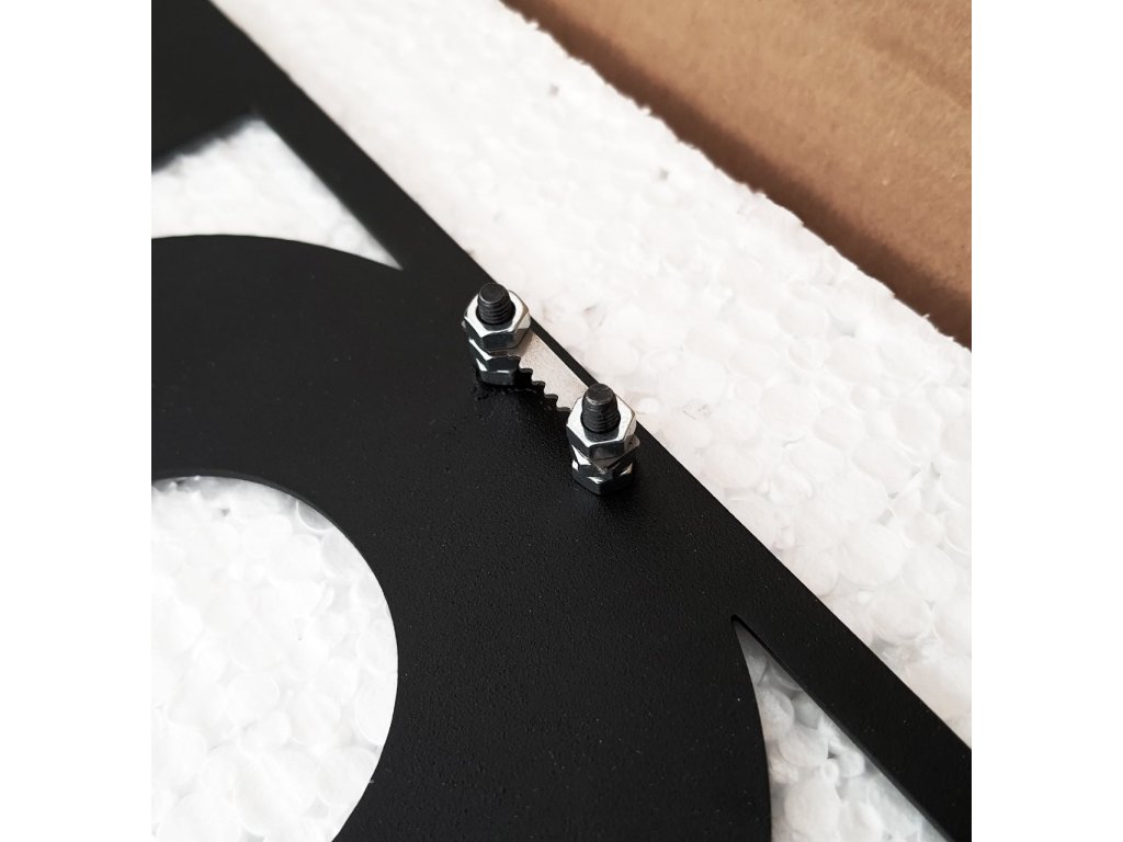 Na výrobu byl použitý 1,5 mm silný kov a dosahuje rozměrů 120 x 69 cm.