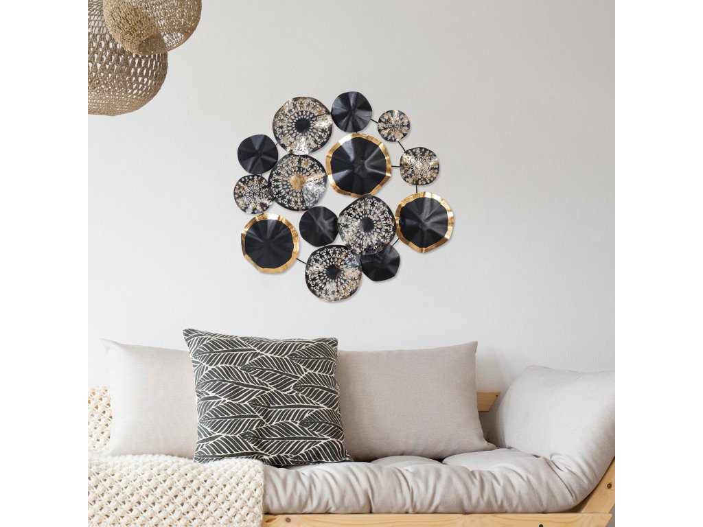 DEŠTNÍKY A PARAPLATA je možná interpretace této nástěnné dekorace s perforovanými a zlatými prvky, jenž může obohatit váš obytný prostor.