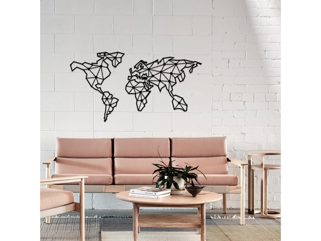 Více než metr široká černá kovová dekorace znázorňuje KONTINENTY naší planety a vy si s ní můžete ozdobit interiér.