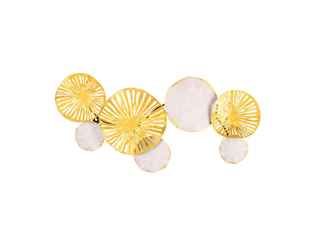 KVĚTY SVLAČCE je možná interpretace této zlato-bílé nástěnné dekorace s perforovanými a plnými prvky, jež mohou obohatit váš obytný prostor.