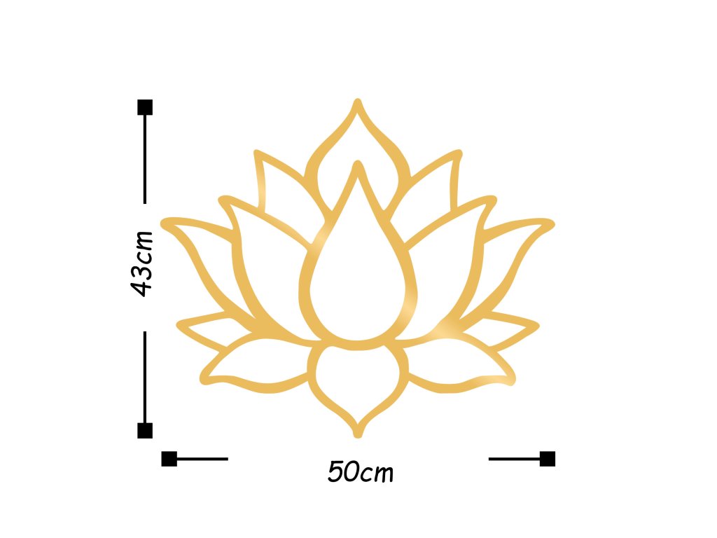 Kovová nástěnná dekorace zobrazuje zlaté obrysy LOTOSOVÉHO KVĚTU, který má v řadě náboženství a kultur silný duchovní význam.