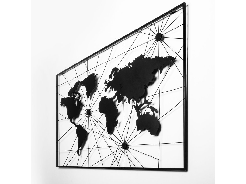 Mapa světa protkaná spoustou drátů protínajících tři body bude úžasným industriálním doplňkem do obdobně laděného obytného prostoru.
