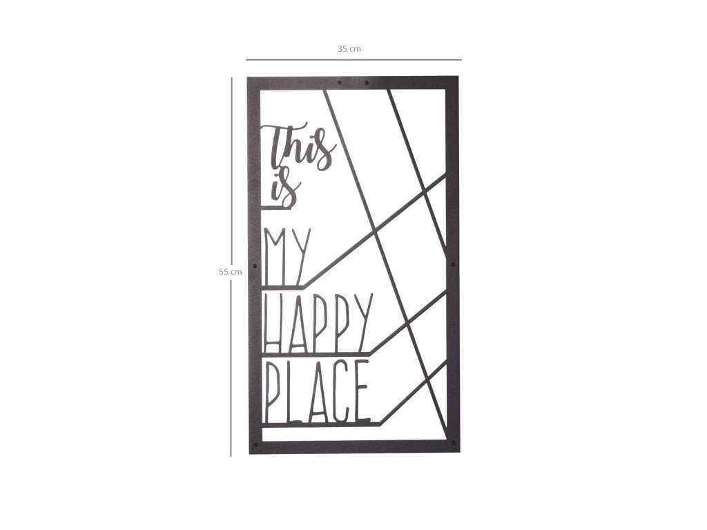 Černý kovový rám s drátěnými linkami a nápisem "THIS IS MY HAPPY PLACE" poukazuje na vaše oblíbené místo, které chcete, aby respektovali i ostatní.
