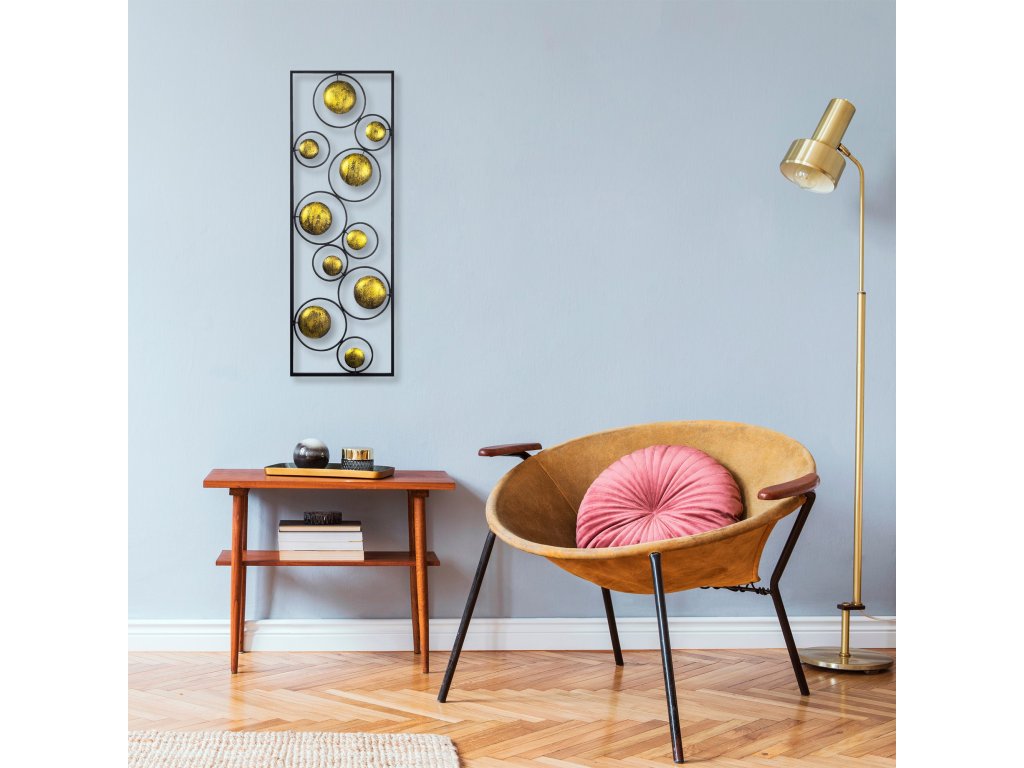 Výhodou této kovové nástěnné dekorace je její abstraktní nádech a vy si můžete představit nejen planety, ale třeba míče, či bubliny.