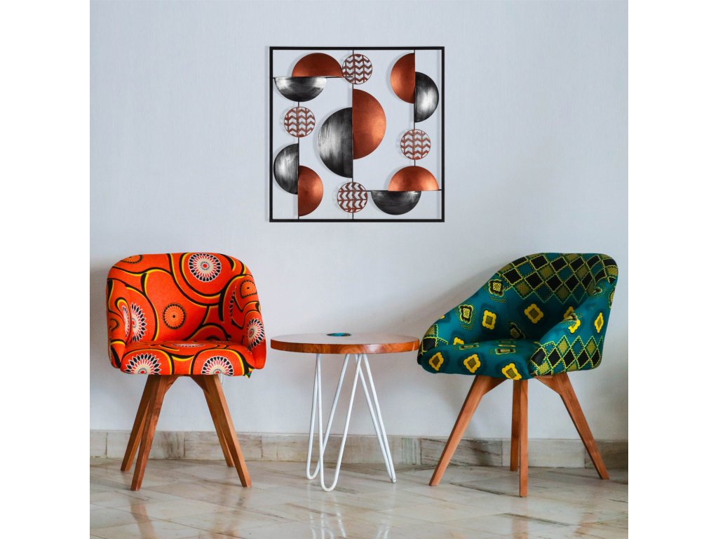 Toto dílo propojuje kruhy, půlkruhy a čtverec do jednoho moderního dekorativního objektu určeného na zeď.