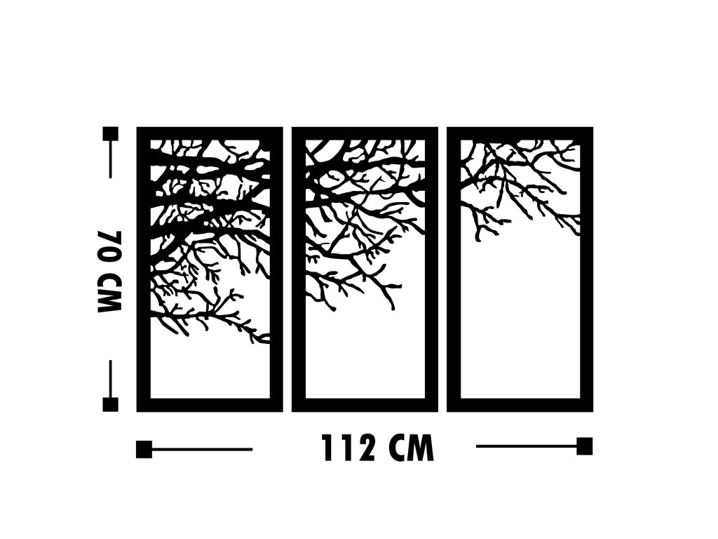 Nástěnná dekorace kov VĚTEV STROMU 112 x 70 cm (3 kusy)