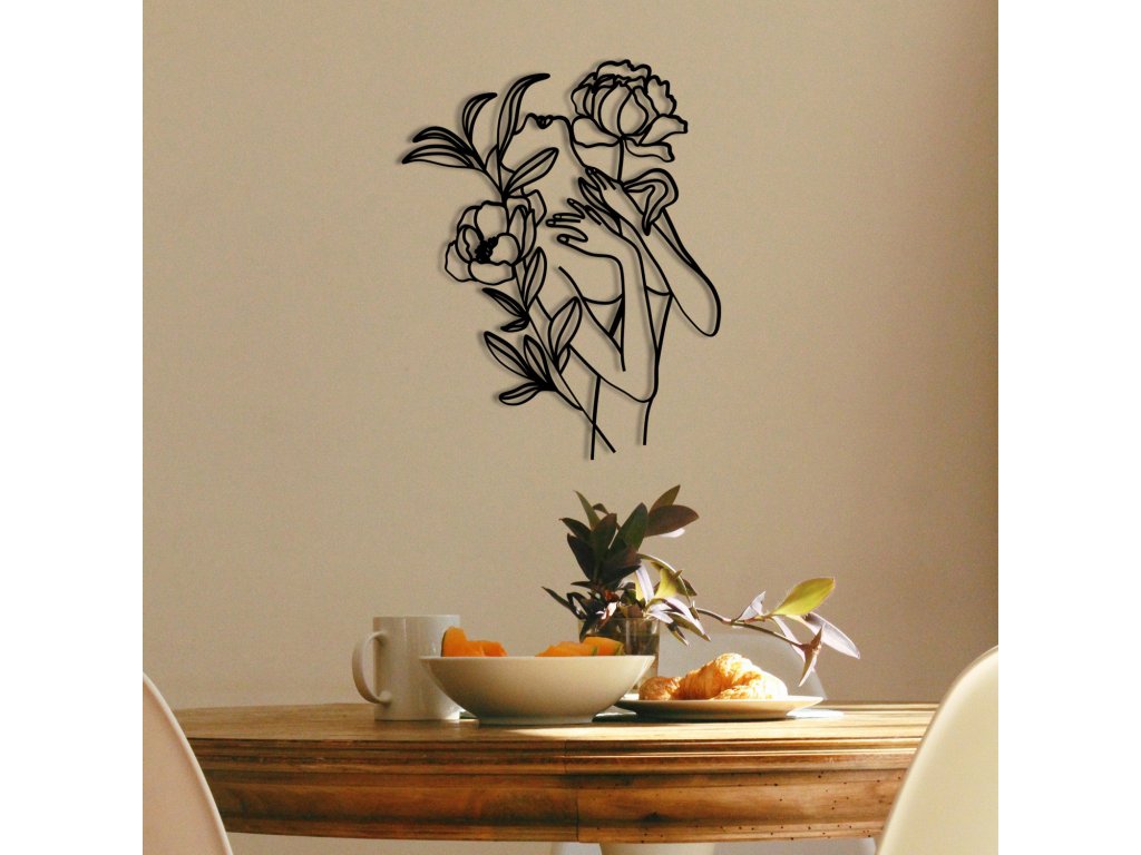 Mezi pivoňkami skryté ženské tělo je tématem této kovové nástěnné dekorace, která má potenciál ozdobit právě váš interiér.