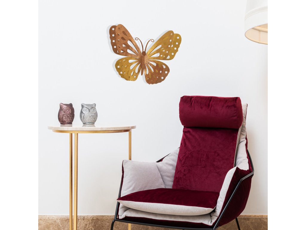 Úžasná nástěnná kovová dekorace v podobě zlatého motýla může ozdobit obytný prostor právě u vás.