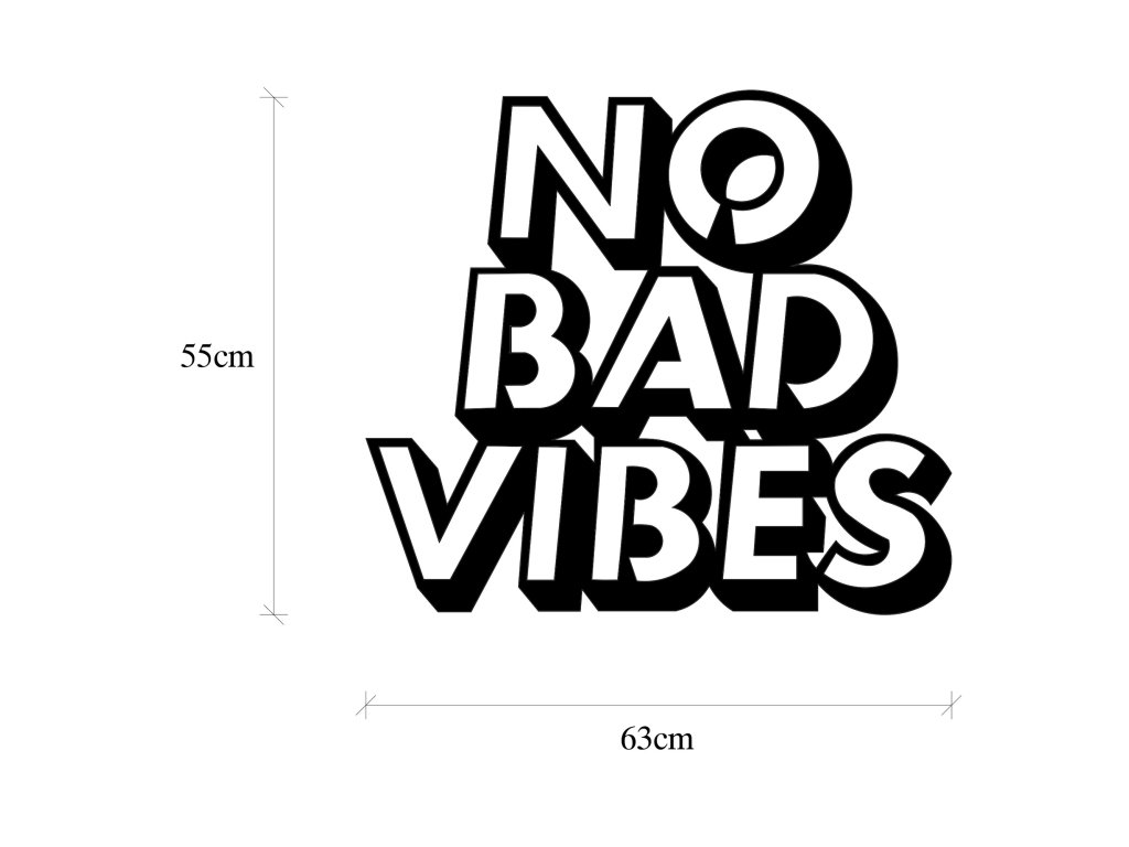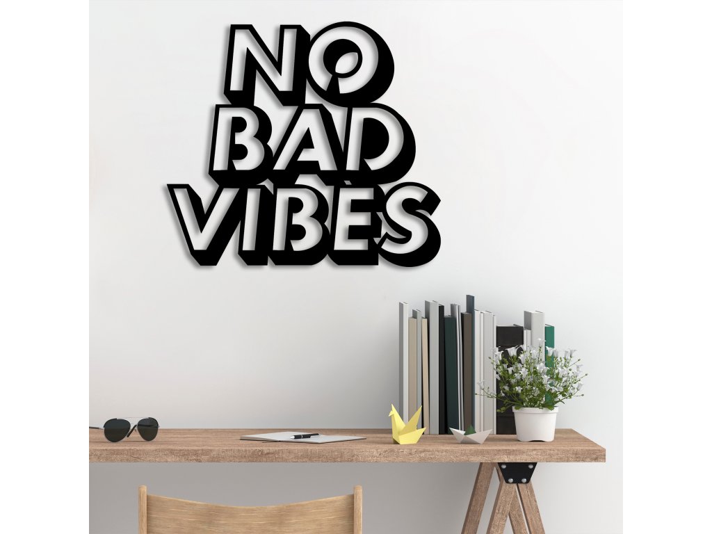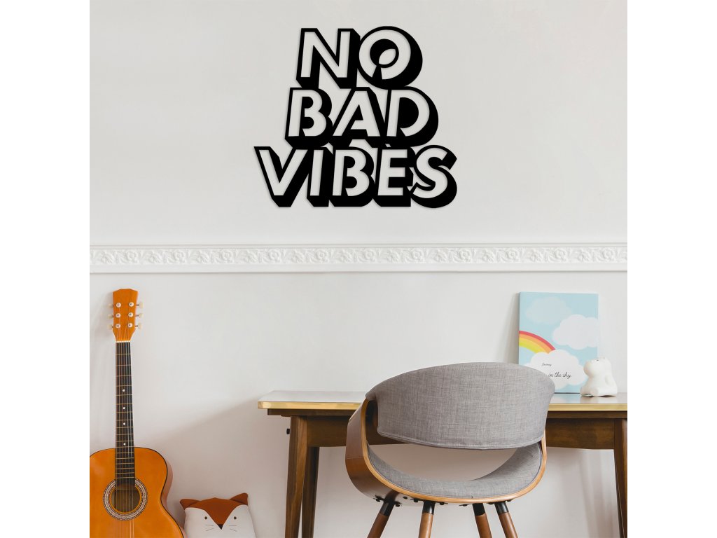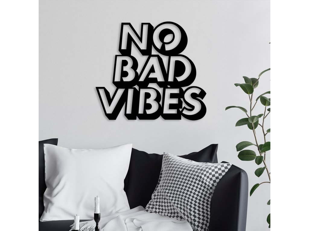 Přeměňte svůj prostor s elegancí a stylem této kovové dekorace na stěnu v podobě nápisu No Bad Vibes.