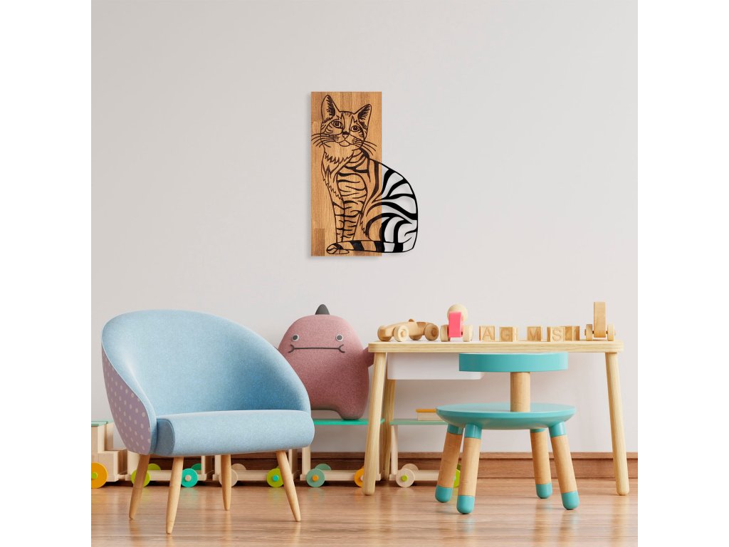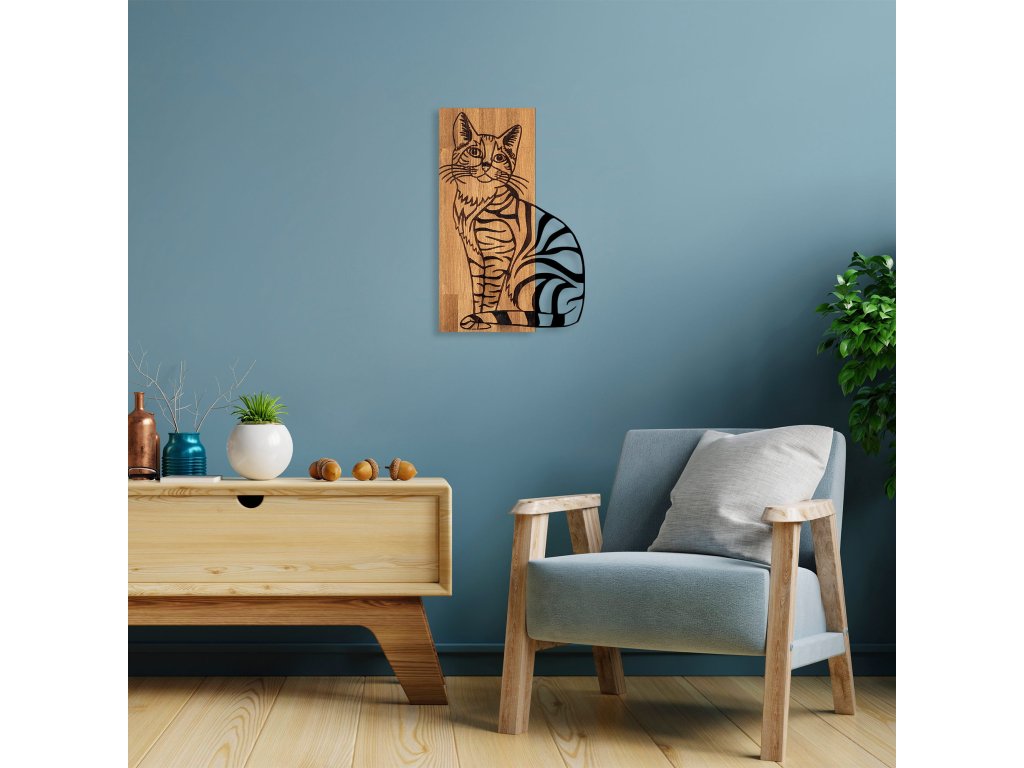 Roztomilá dřevěná dekorace v podobě mourovaté kočky.
