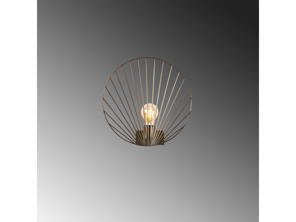 Nástěnné osvětlení BYISOO je vyrobeno z malé základny s objímkou, která je částečně schovaná za zlatým drátěným vějířem.