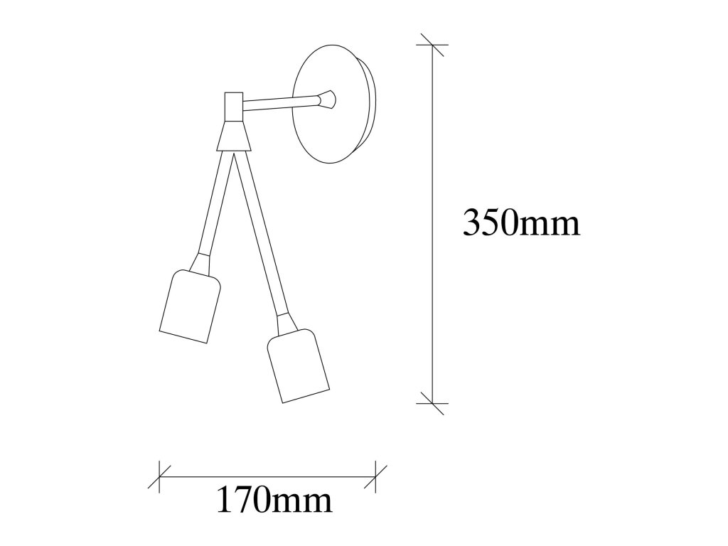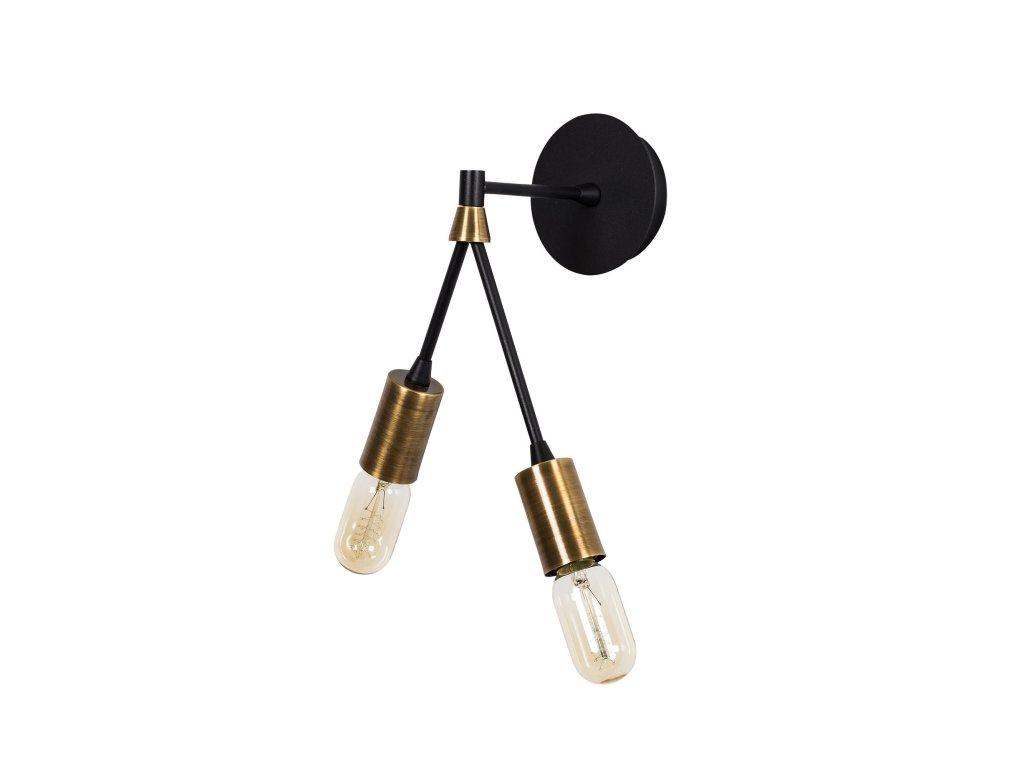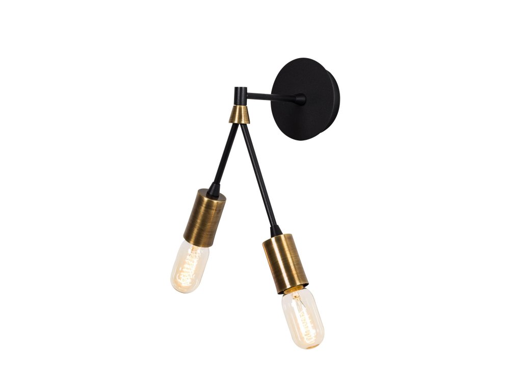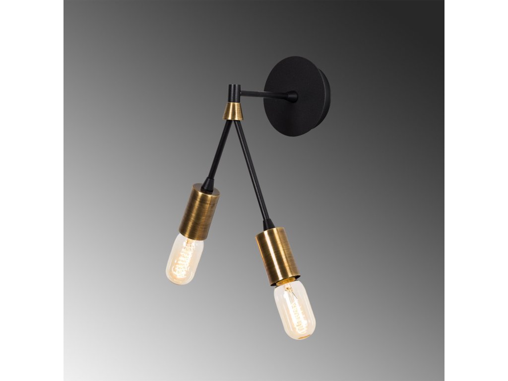 Nástěnné osvětlení DARTINI v dekoru černé a zlaté barvy je tvořeno malou základnou, z níž dvě krátká ohnutá ramena nesou objímky se žárovkami.