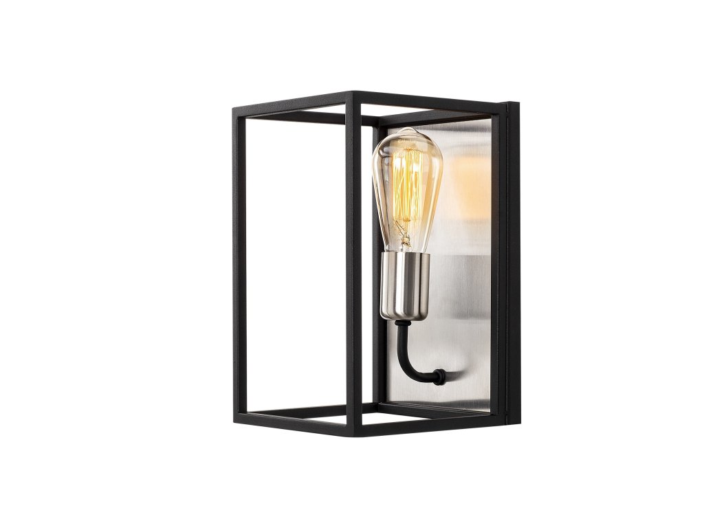 Černé nástěnné osvětlení KAFES vypadá jako lucerna, jejíž zadní stěna je odrazovou plochou, která umocní proud světla.