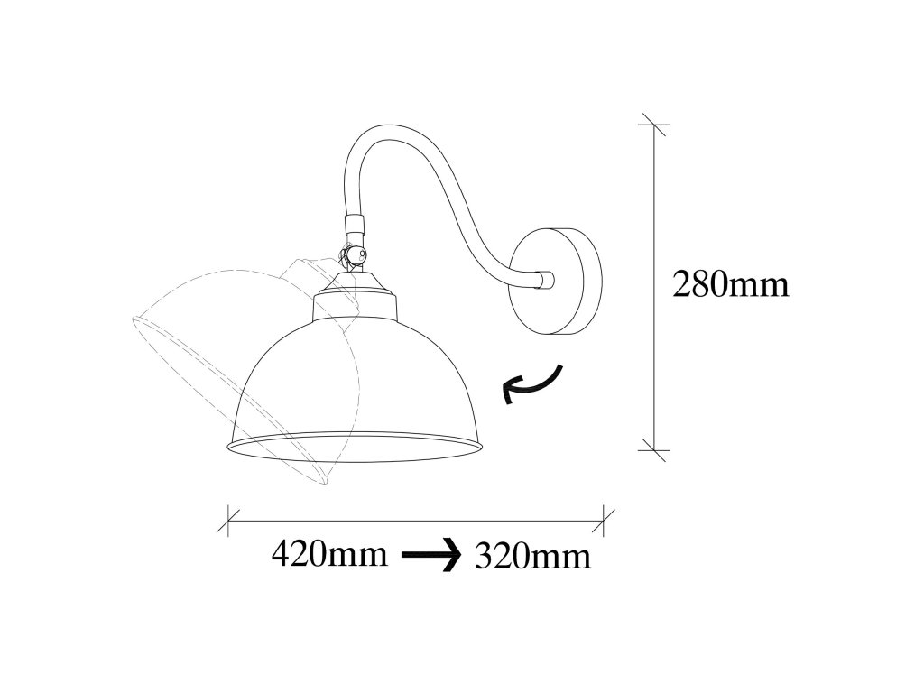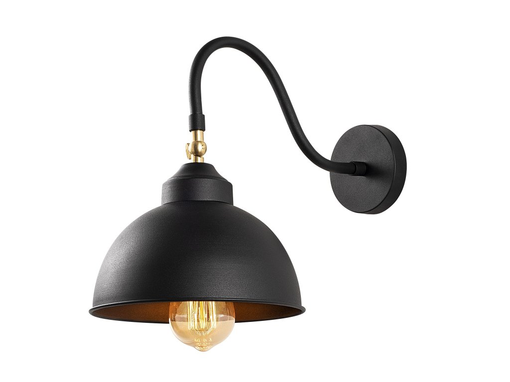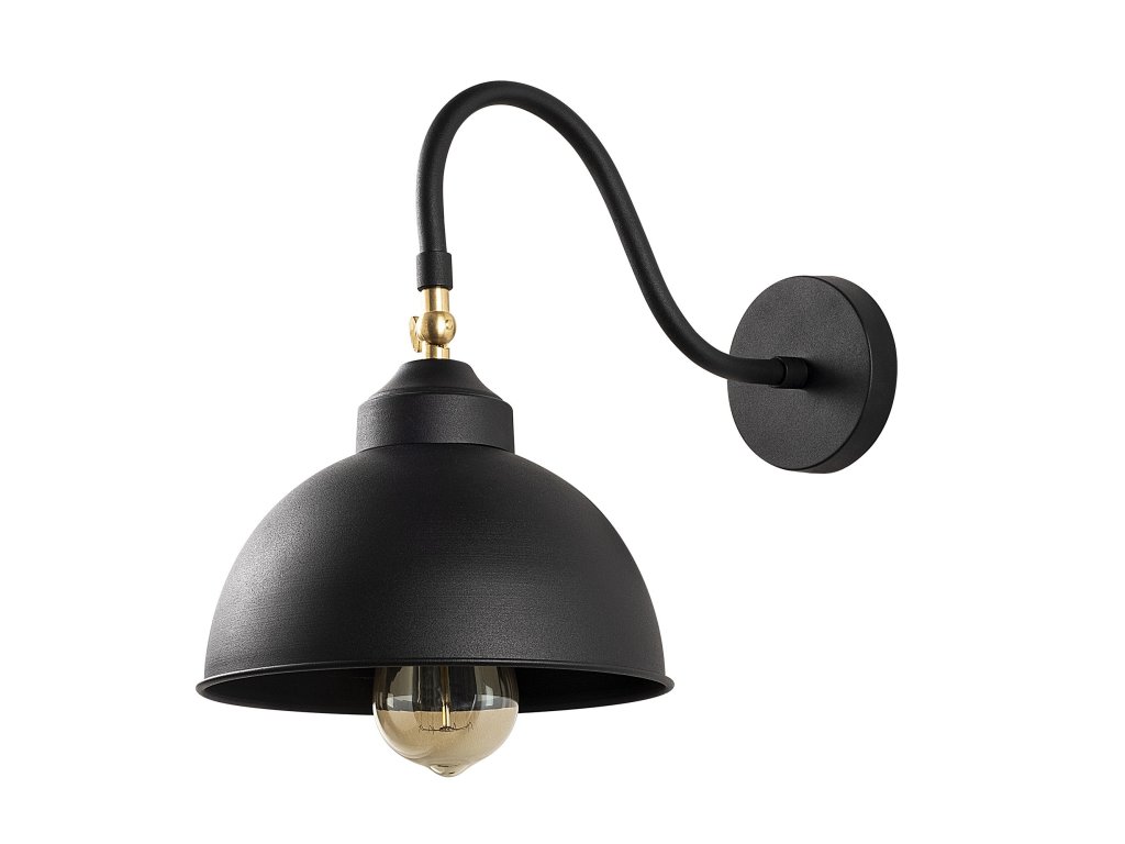 Nástěnné osvětlení SAGLAM má tělo i stínítko vyrobené v černé barvě a kloub, který umožňuje klopení stínítka, je v dekoru zlaté barvy.
