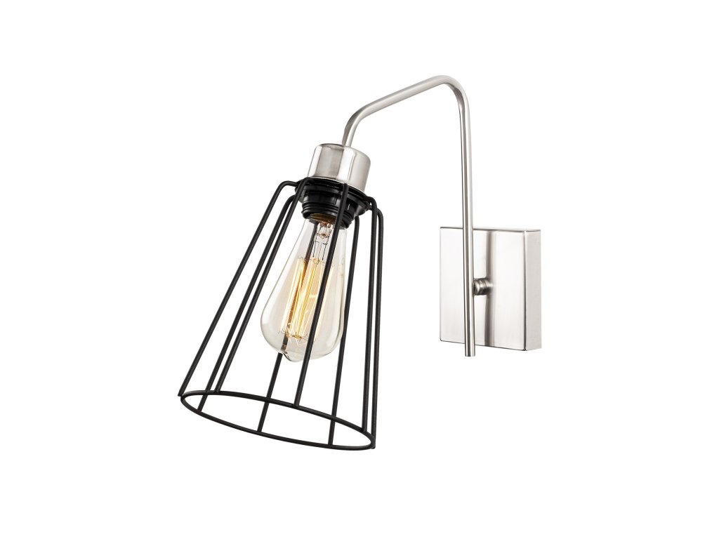 Nástěnné osvětlení VE je vyrobené až na černé drátěné stínítko celé v dekoru nikl a vytváří vzájemně kontrast těchto dvou materiálů.