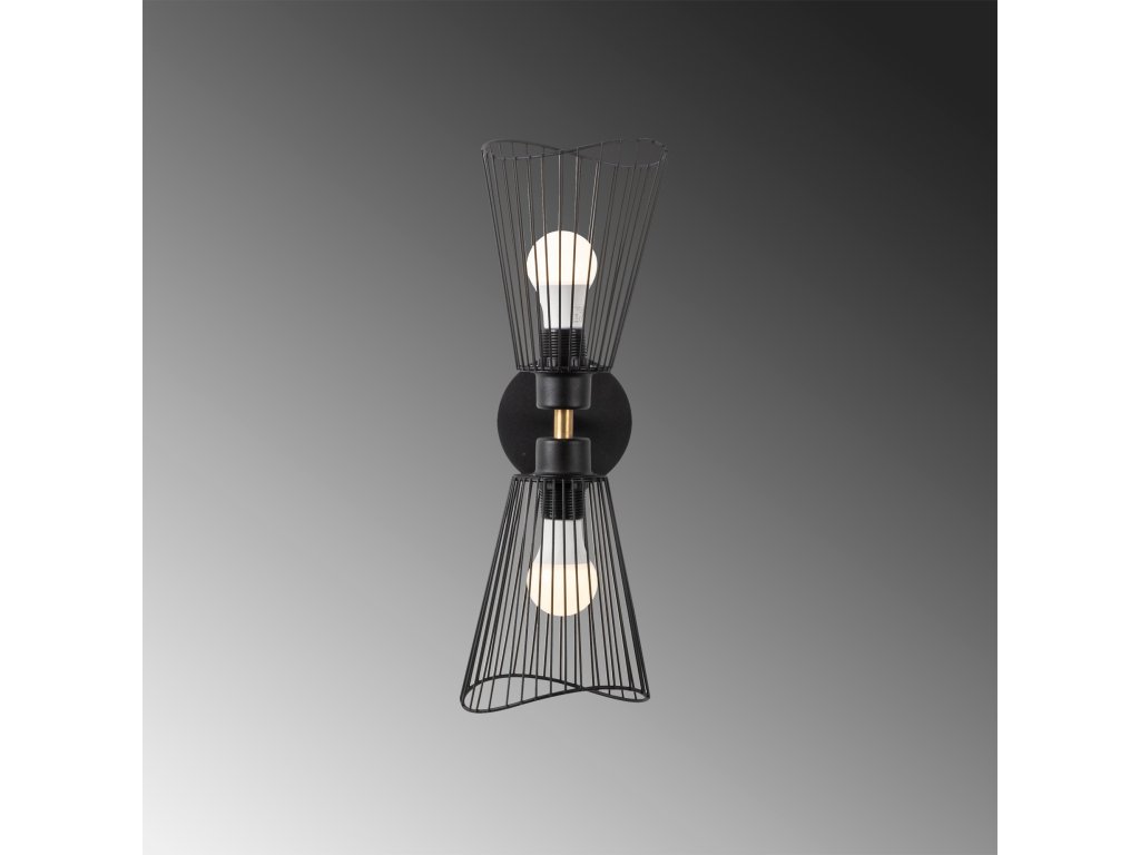 ZEYNO je designově krásně provedené černé nástěnné osvětlení, tvořené protilehlými drátěnými košíčky.