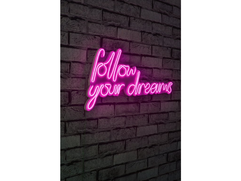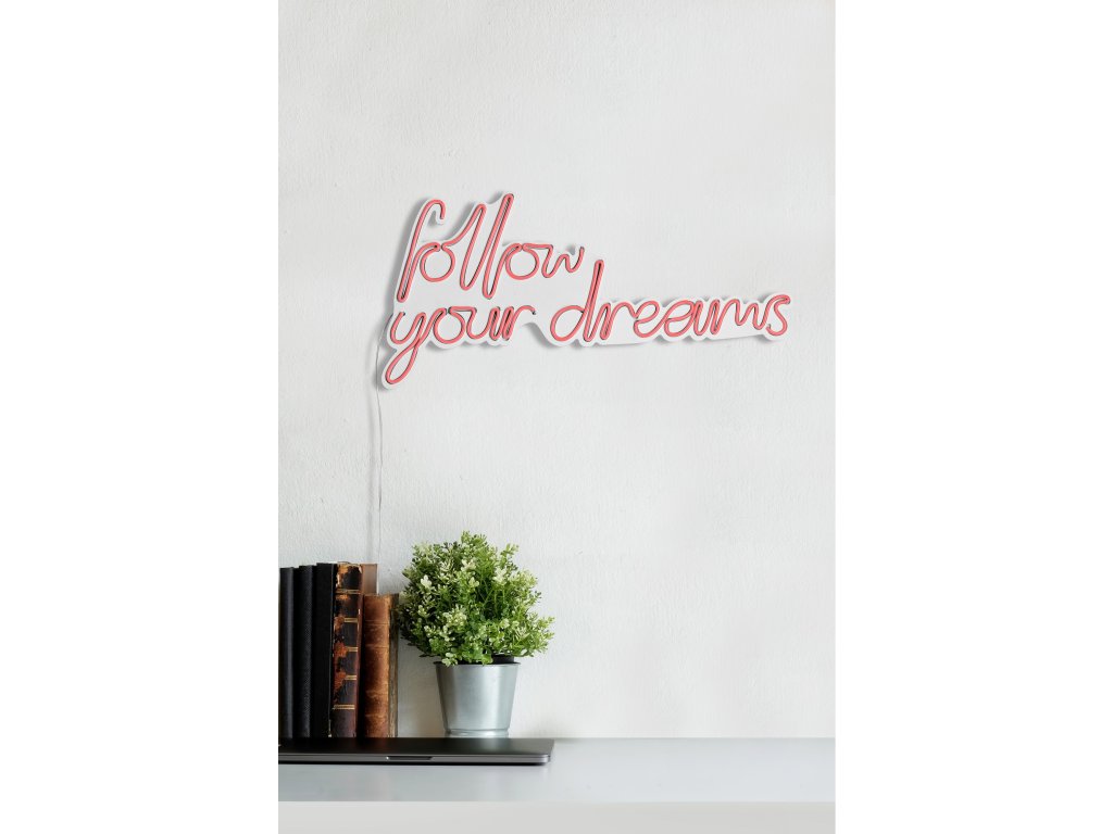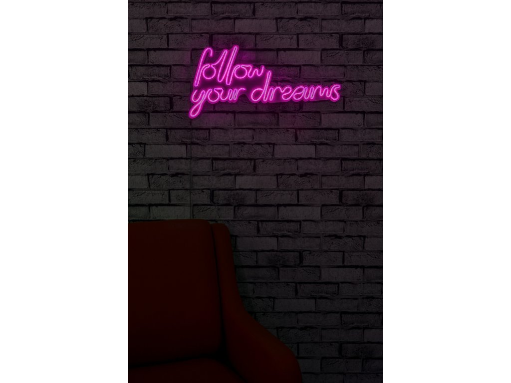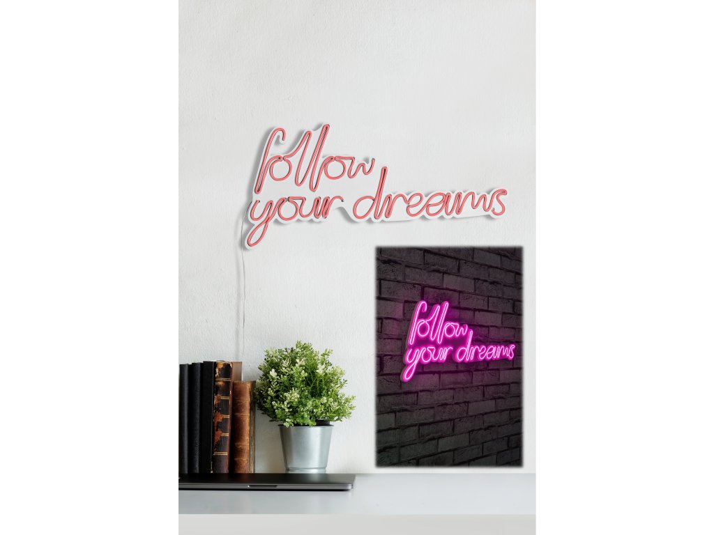 Nástěnný neonový nápis led FOLLOW YOUR DREAMS růžová