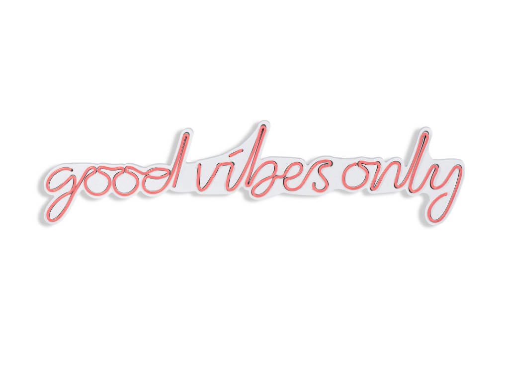 Nástěnný dekorativní nápis s led osvětlením - GOOD VIBES ONLY, růžový.