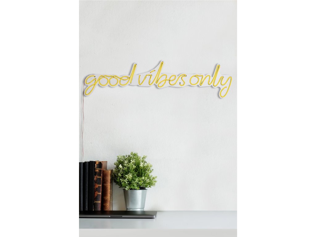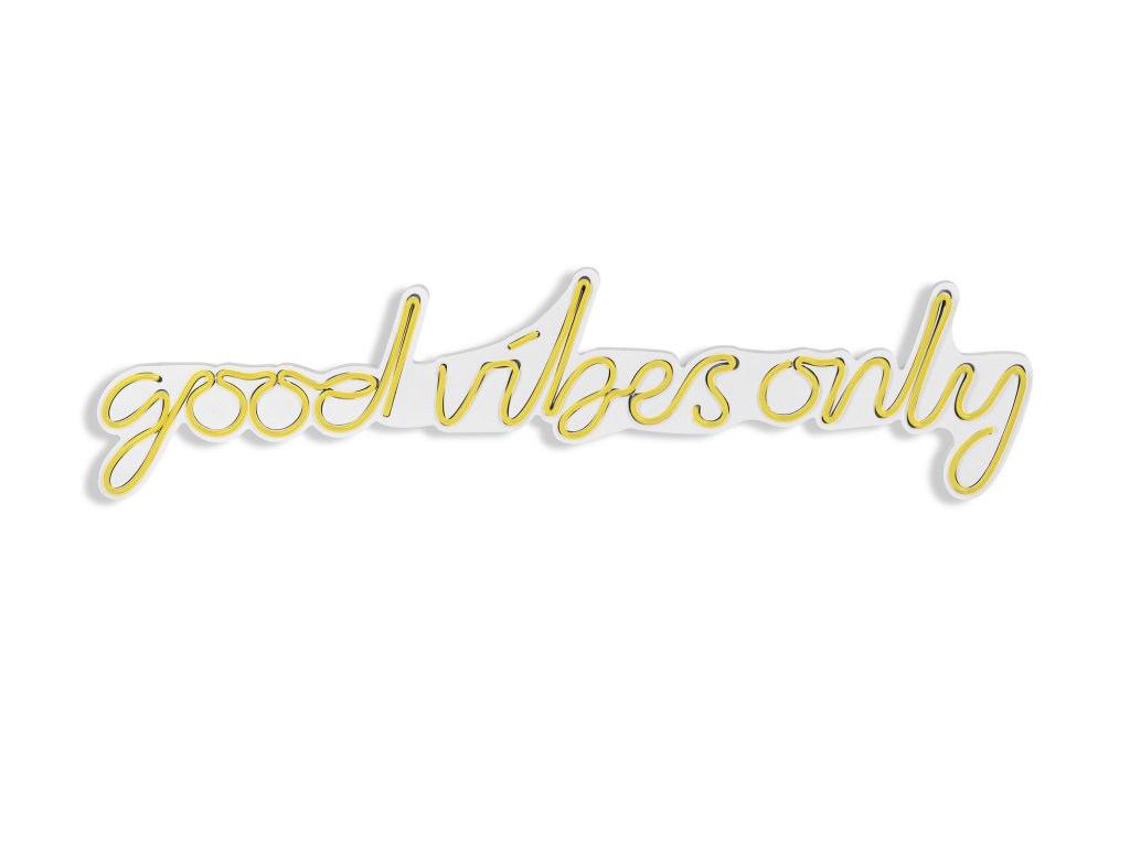 Nástěnný dekorativní nápis s led osvětlením - GOOD VIBES ONLY, žlutý.