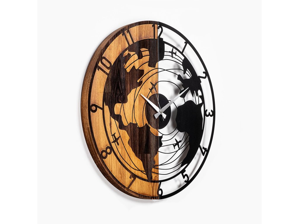 Jedinečný design dřeva zasahuje pouze na jednu polovinu ciferníku, což vytváří výrazný vizuální kontrast, který jistě upoutá pozornost. Bílé ručičky krásně kontrastují s černým ciferníkem a umožňují snadné určení času na první pohled. Střed ciferníku vyplňuje ztvárnění naší planety země s kontinenty a dráhami letů dokonce i s malými letadly.