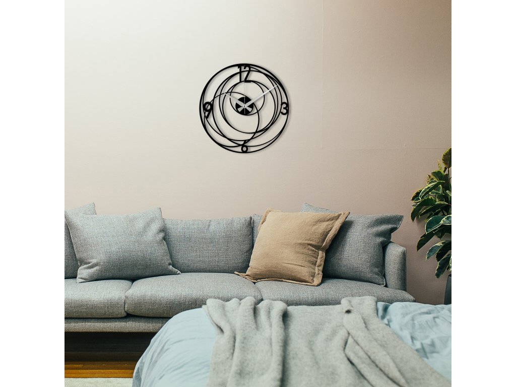 Co však dělá kovové nástěnné hodiny skutečně jedinečnými? Jsou vybaveny světlými ručičkami, které se ladně pohybují po téměř prázdném prostoru a jen čtyřikrát protnou číslici určující čas. Hodiny mají jen třetinový ciferník, a pozornost se soustředí na drátěný kruhový prstenec, který vytváří vizuální efekt, jenž mnohého pozorovatele zaujme.