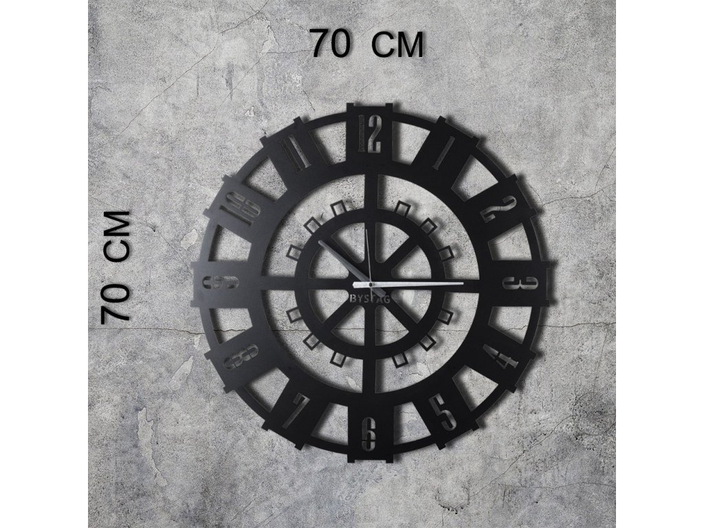 Prohlédněte si elegantní a stylové černé kovové nástěnné hodiny! Jsou vyrobeny z odolného kovu o tloušťce 2 mm a odolávají zkoušce času. Se svými působivými rozměry 70 x 70 cm jistě udělají odvážný dojem v každé větší místnosti.
