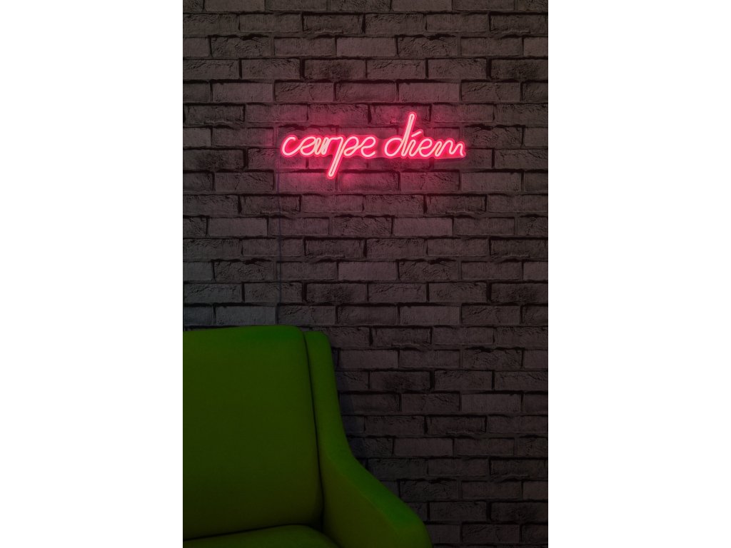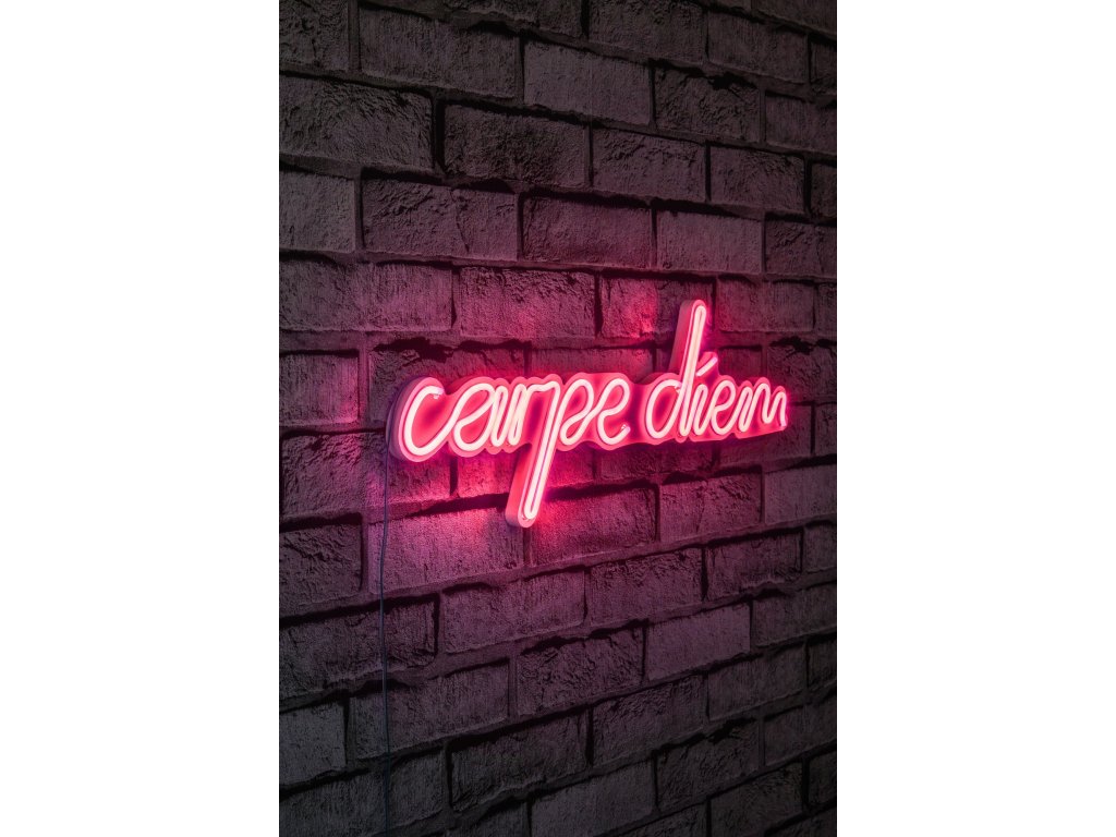 Vytvořte ve svém obytném prostoru podmanivou atmosféru pomocí dekorativního plastového LED osvětlení. Růžově svítící nápis Carpe diem je navržen s flexibilními neonovými pásky a umožňuje přinášet do místosti světlo tak, aby se hodilo dovašeho stylu nebo designu porstoru. Ať už chcete vytvořit romantickou atmosféru, přidat do svého prostoru barevný nádech, nebo prostě jen vyjádřit svůj jedinečný styl, tato růžová neonová světla udělají dojem.