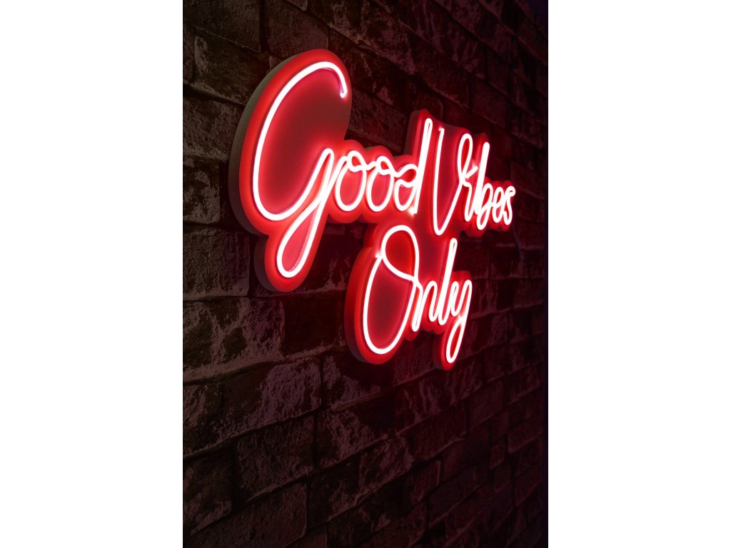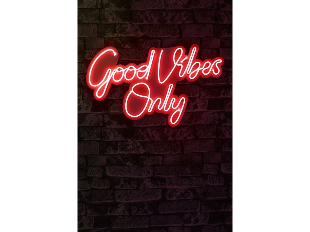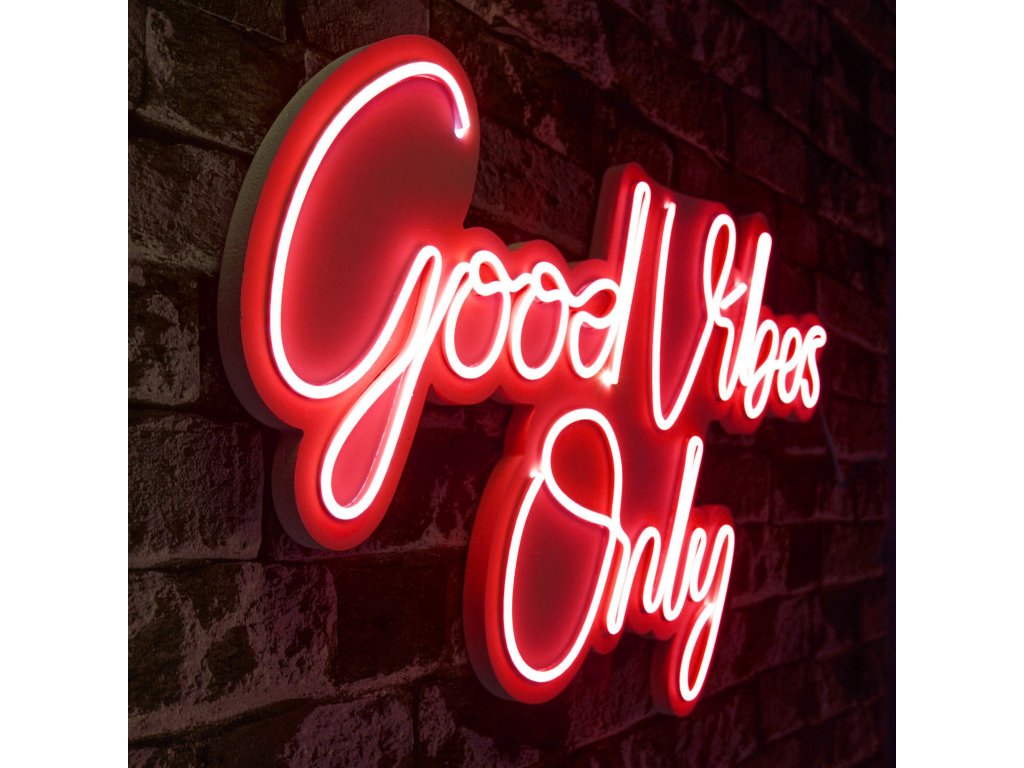 Červená barva, jak známo, burcuje a červeně zářící nápis "Good vibes only" navodí skvělou atmosféru v každém prostoru, do kterého jej nainstalujete.