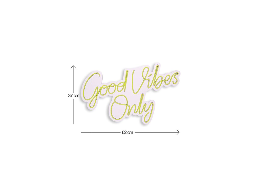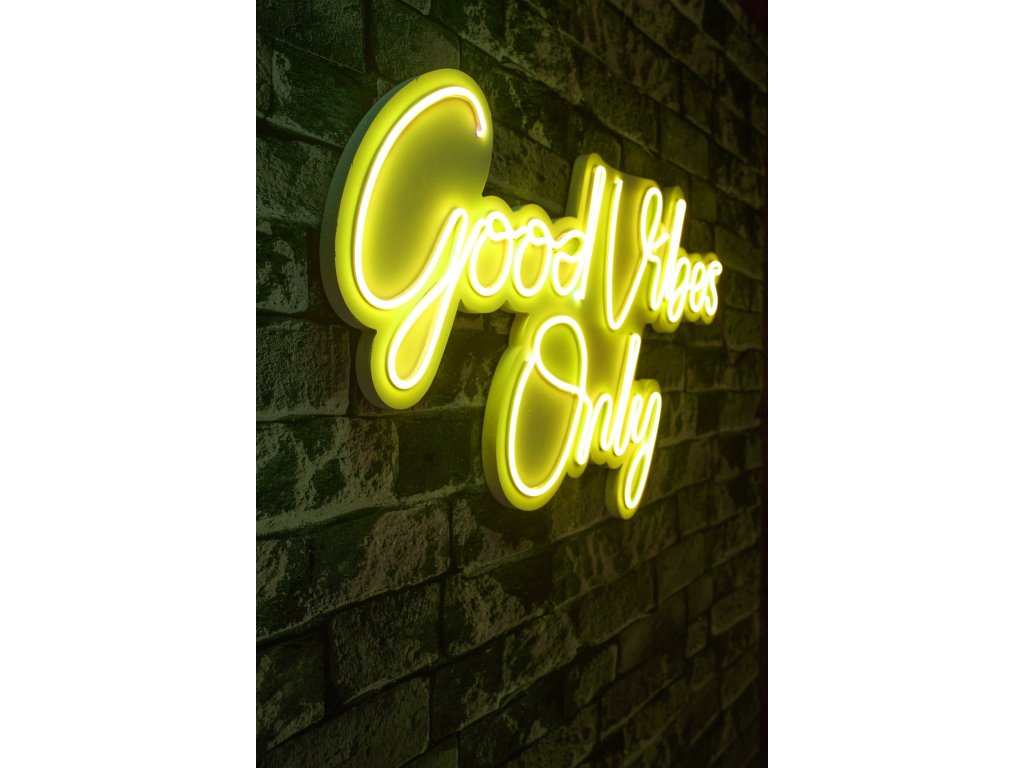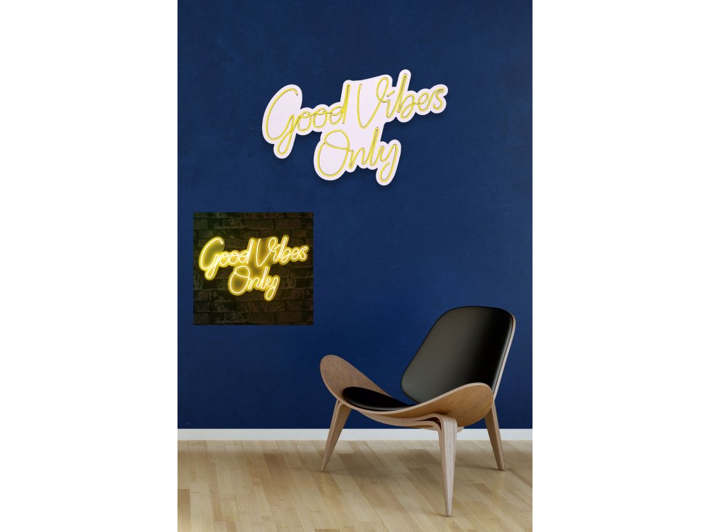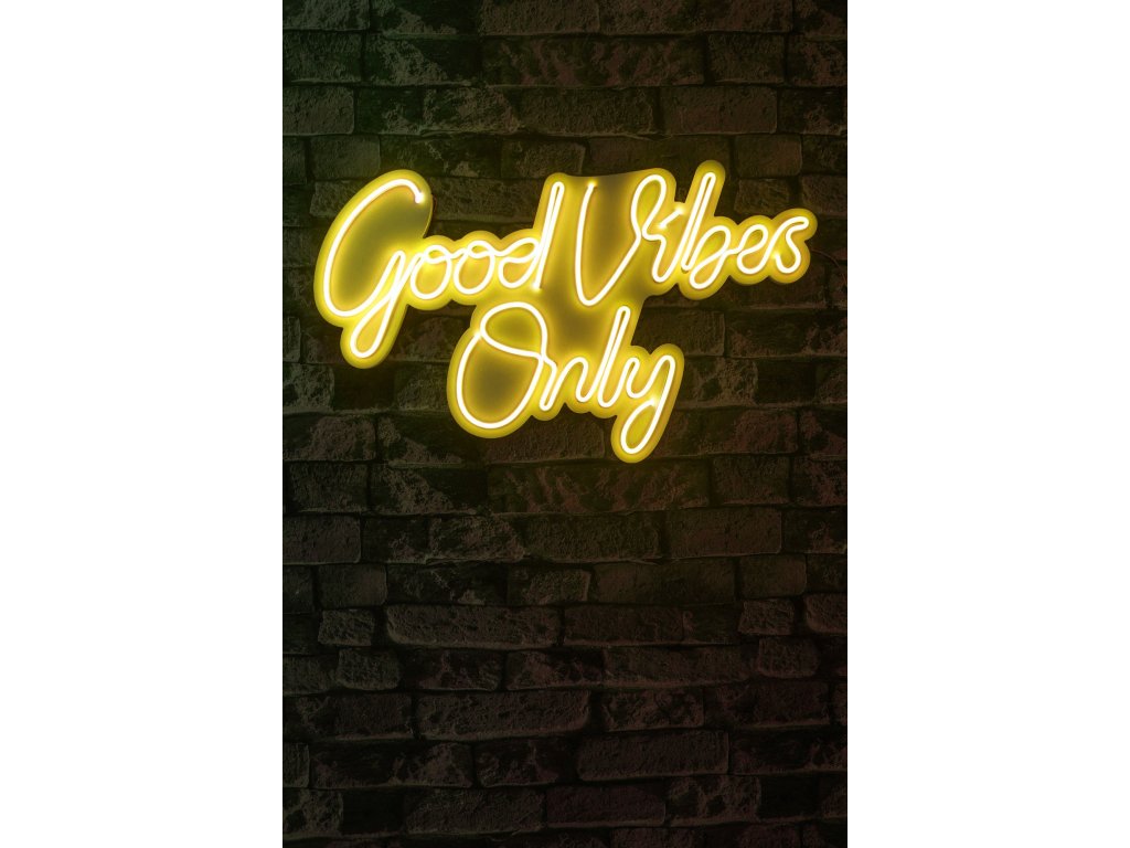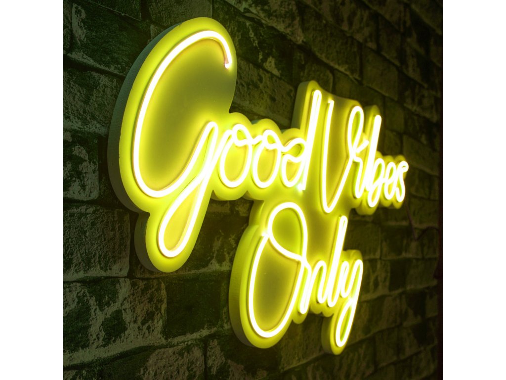 Žlutá barva, jak známo, připomíná slunce a jeho energii a žlutě zářící nápis "Good vibes only" navodí skvělou atmosféru v každém prostoru, do kterého jej nainstalujete.