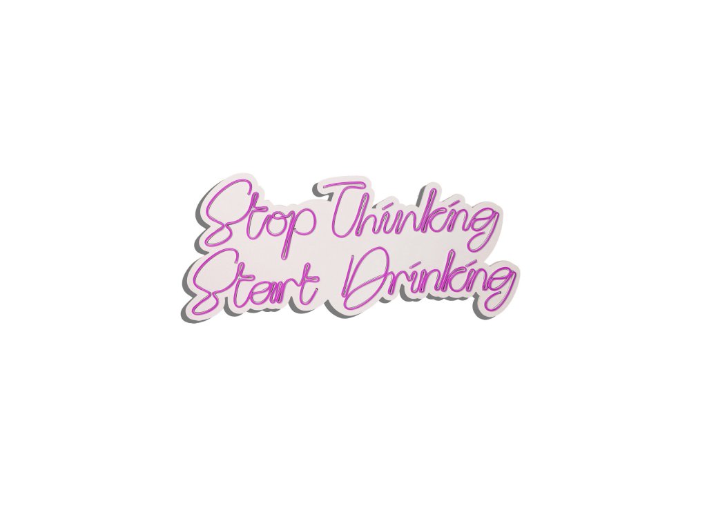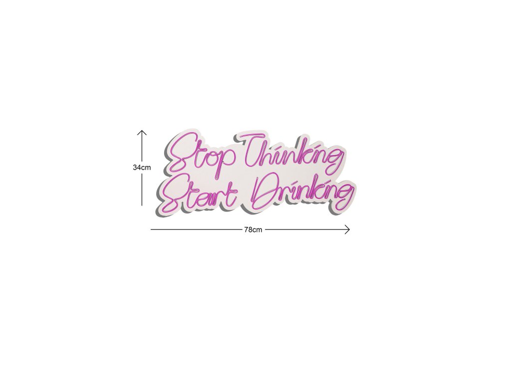 Nástěnná LED dekorace STOP THINKING START DRINKING růžový nápis