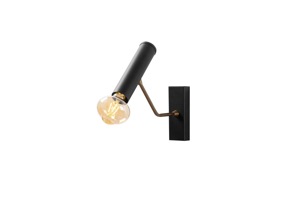 Černé nástěnné osvětlení DOLMA je vyrobeno z obdélníkové základny, malého ramínka a drobného těla s integrovanou objímkou.