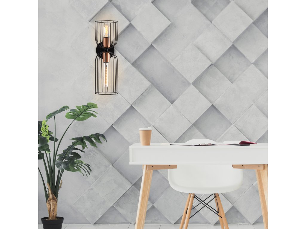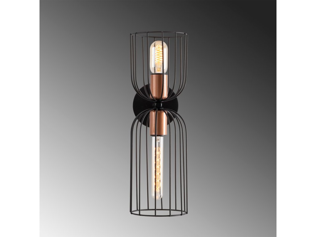Černé nástěnné osvětlení NEZGEP je designově velice zajímavým osvětlovacím tělesem, které na sebe poutá pozornost svými protilehlými drátěnými stínítky.