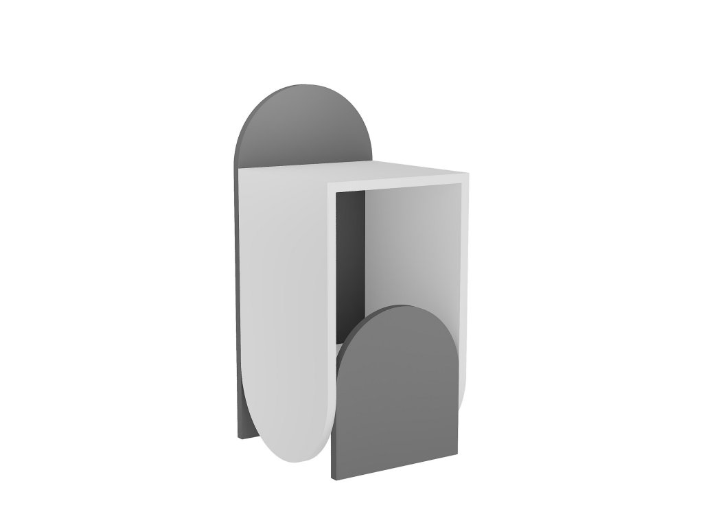 Noční stolek NUN je dvoubarevný bílo-antracitový s půlkruhovými zakončeními všech bočnic.