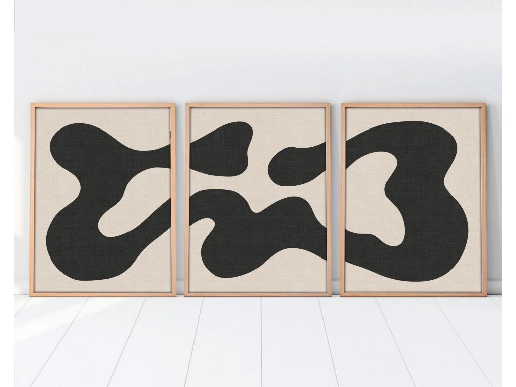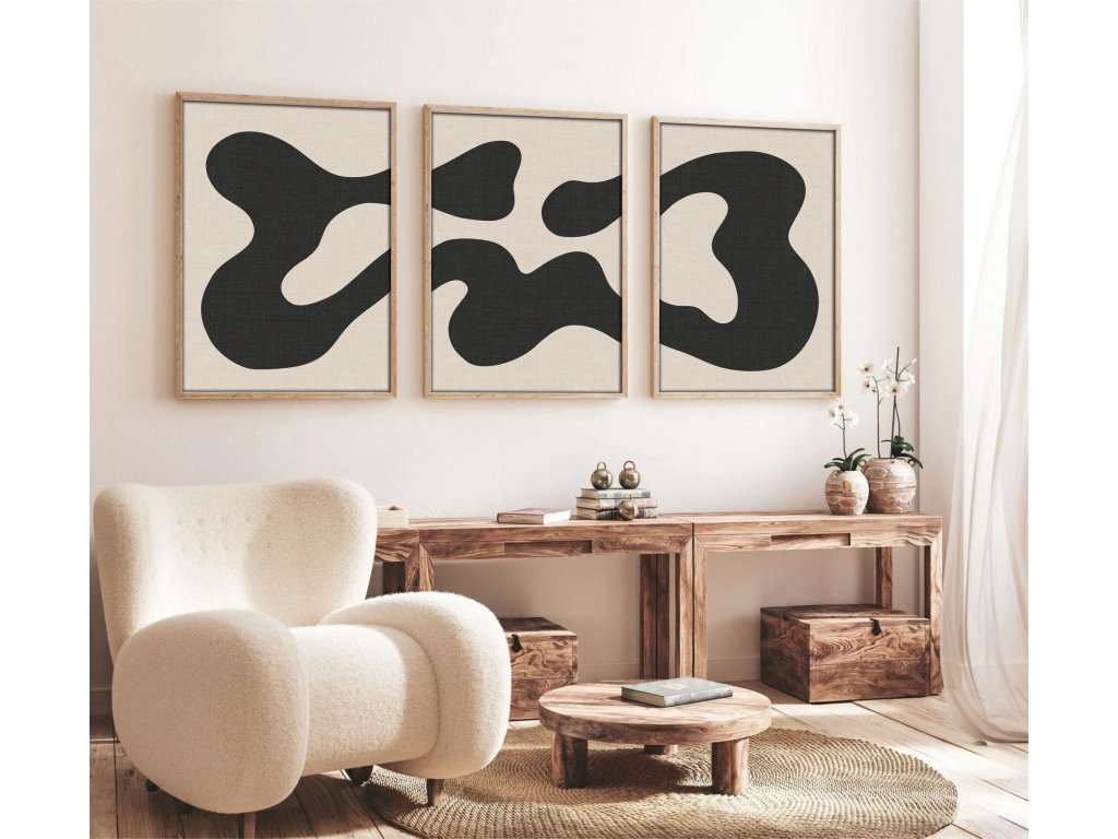 Dekorativní obraz MDF Černý tvar na béžové 3 ks
