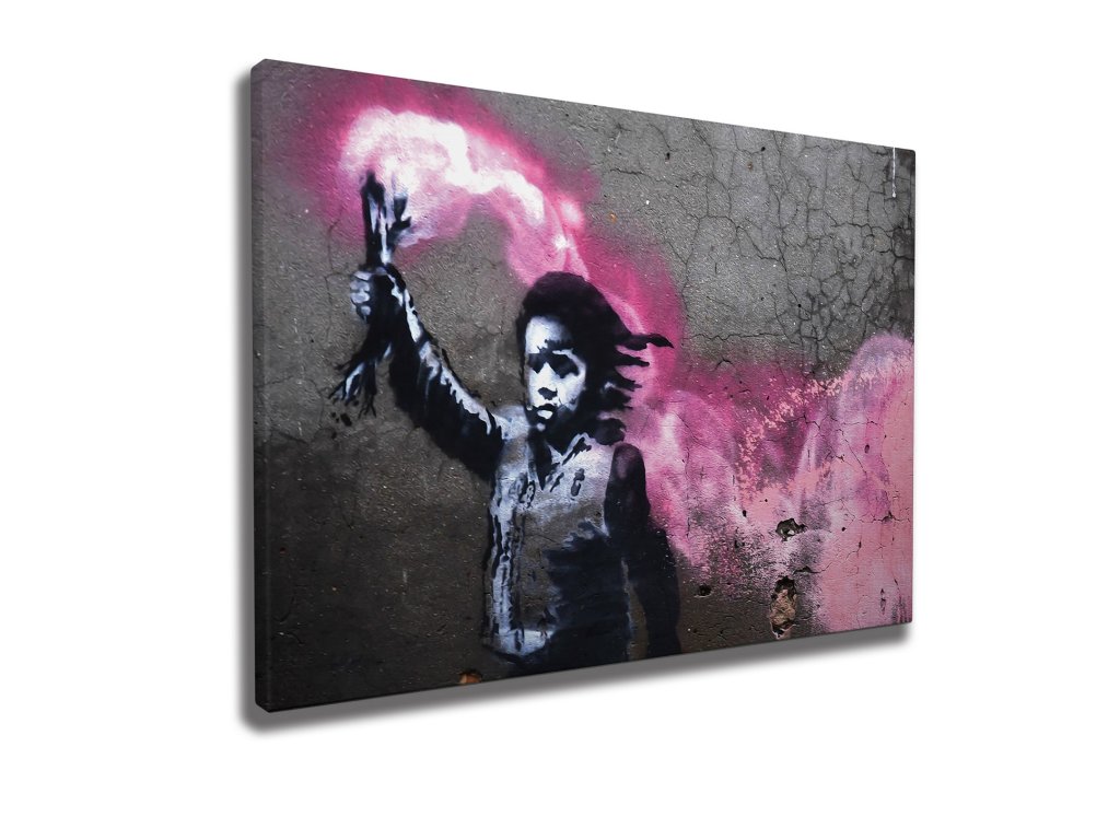Představujeme Vám obraz TORCH: digitální tisk na plátně s designově šedým motivem dítěte nesoucího růžově hořící pochodeň.