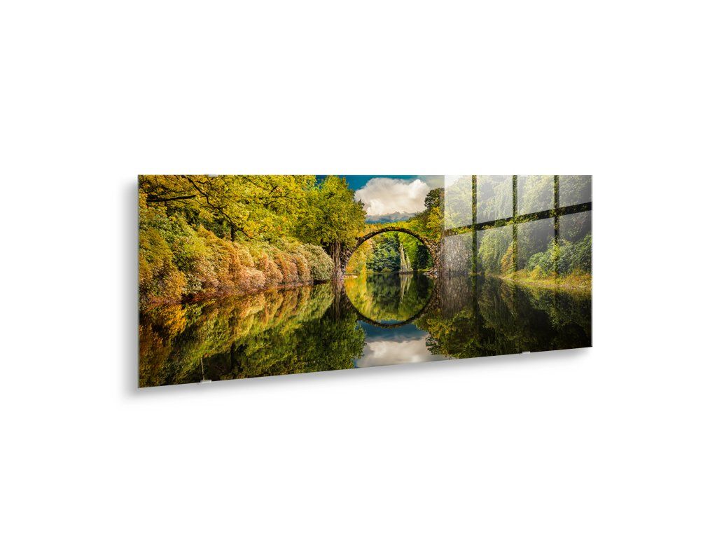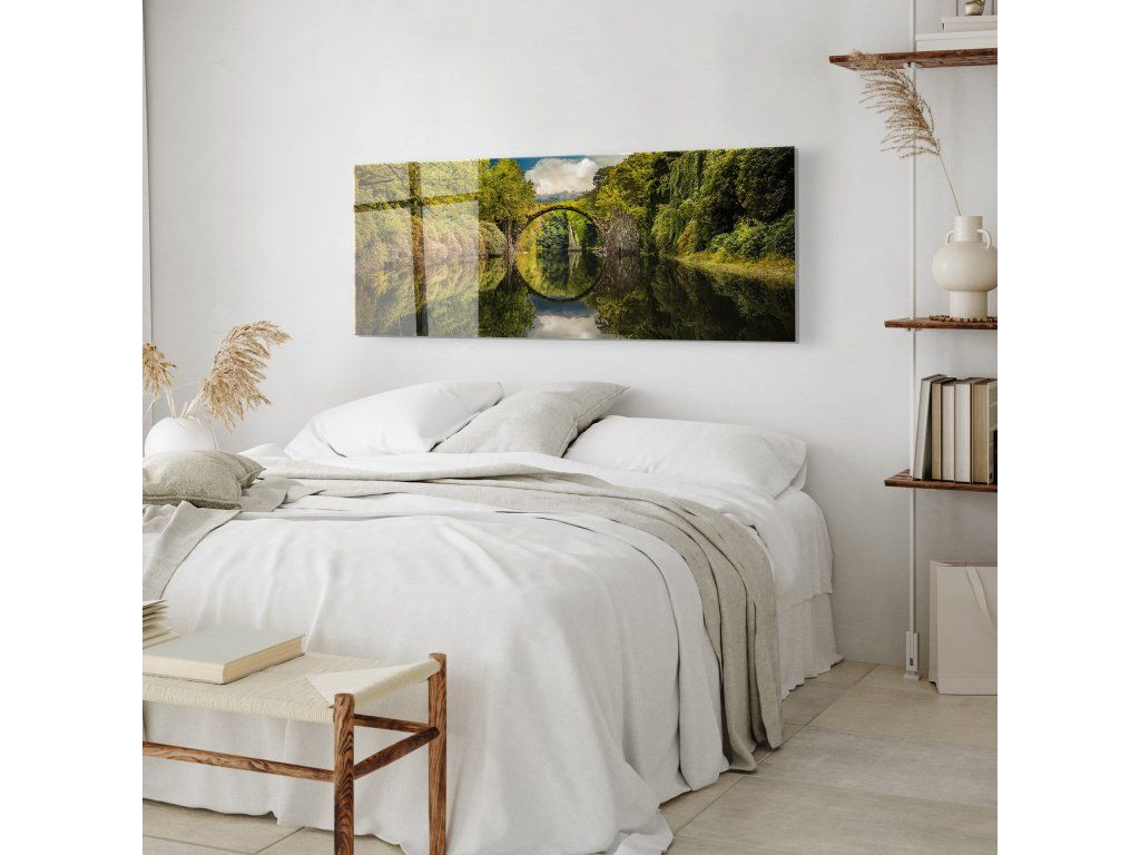 Výrazný skleněný obraz kamenného mostního oblouku uprostřed přírody pro milovníky romantiky bude nepřehlédnutelnou ozdobou každé zdi.