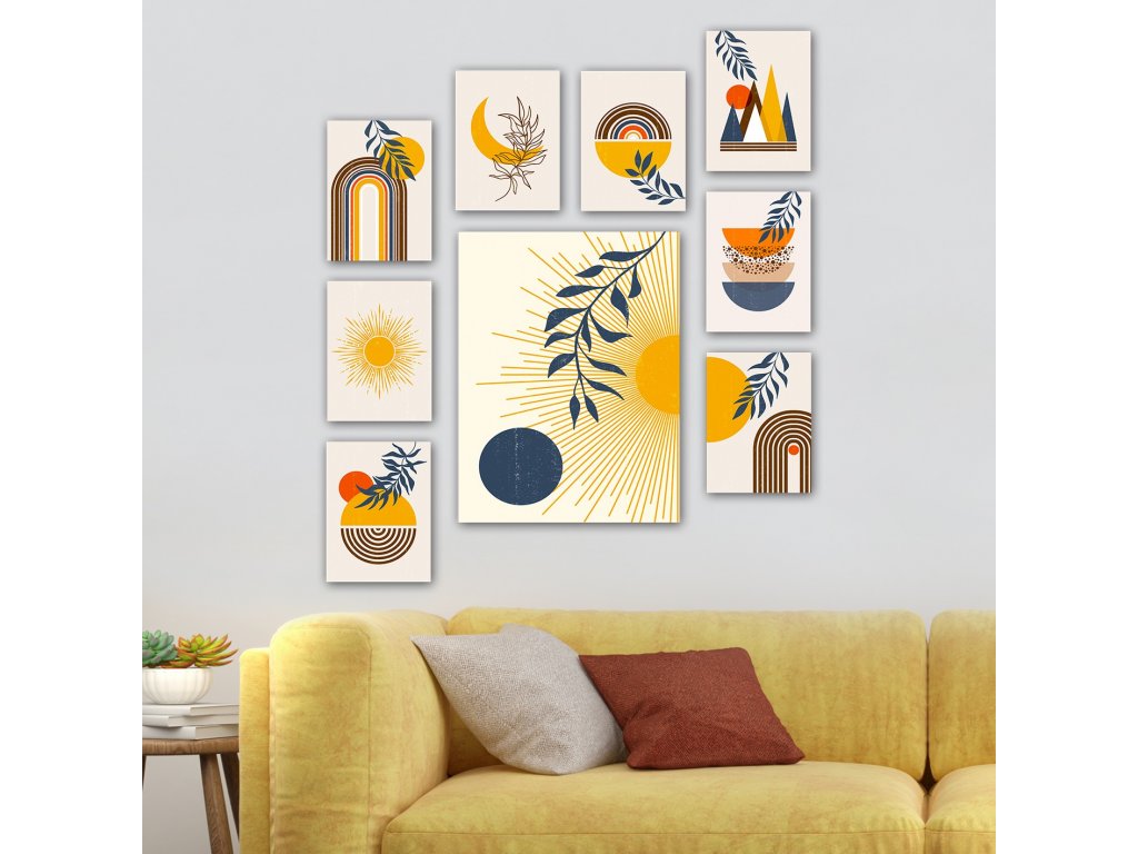Ať už jste milovníci moderního umění, nebo jen chcete dodat interiéru trochu vkusu, náš devítidílný obraz se sluncem je ideální volbou.