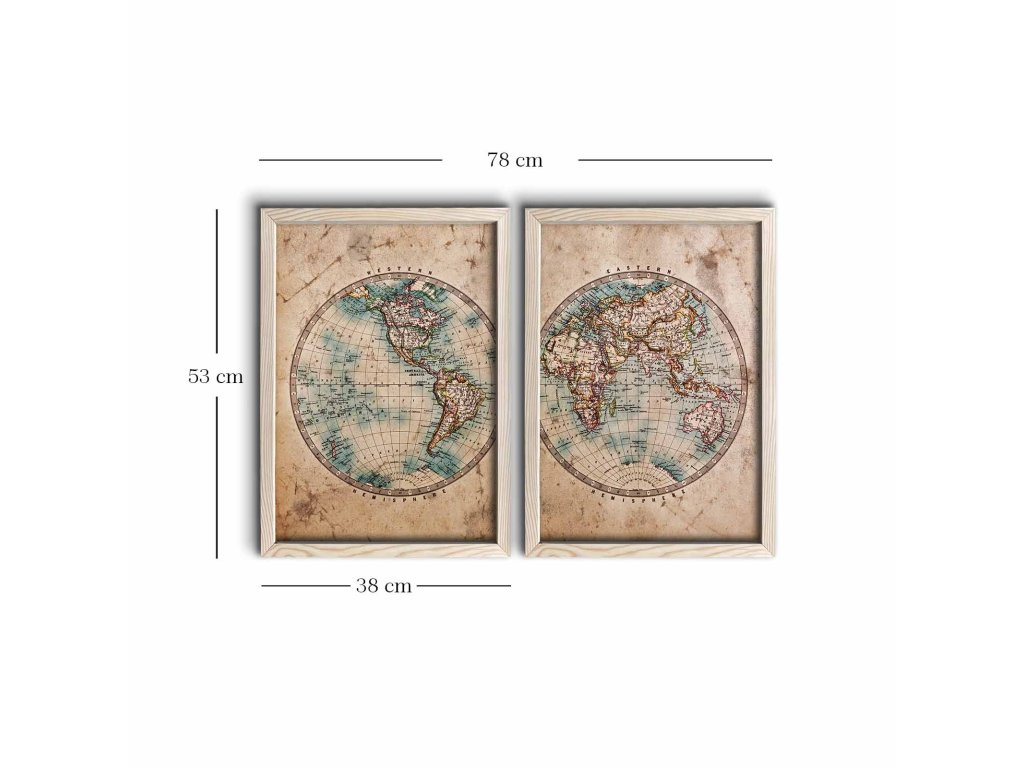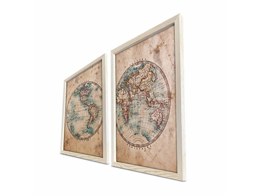 Obraz na MDF s rámem 2ks STARÁ MAPA SVĚTA 38 x 53 cm