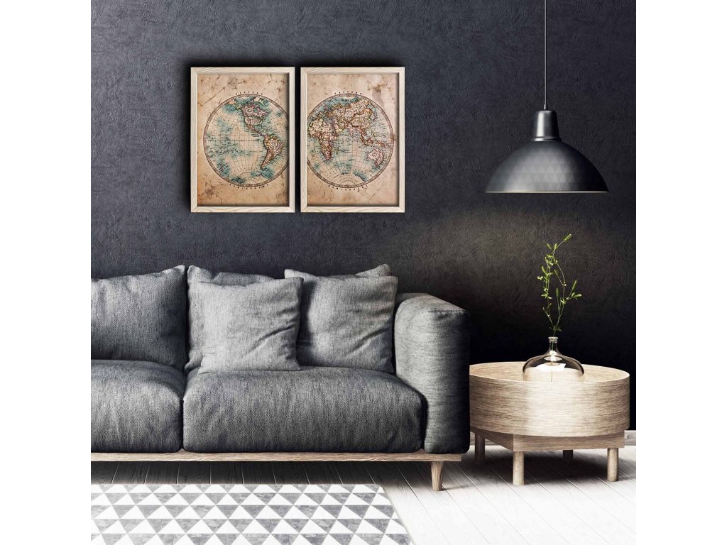 Ať už jste nadšenci do historie, nebo jen chcete svému prostoru dodat vintage styl, je tento dvoudílný obraz s mapou starého světa ideální volbou.