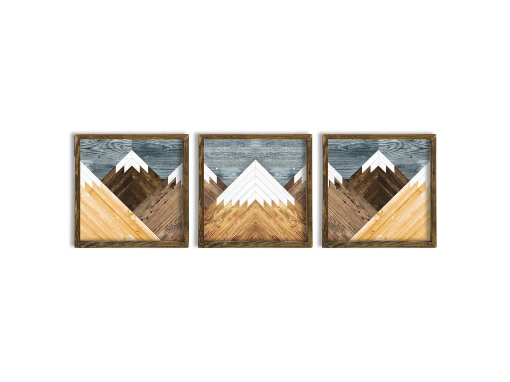 Obraz na MDF s rámem 3ks Z LAMEL SLOŽENÉ HORY 50 x 50 cm